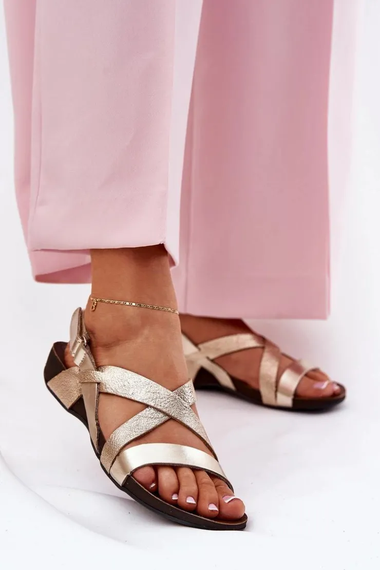 Damskie sandały z naturalnej skóry to doskonały wybór na ciepłe dni. Osadzone na płaskim obcasie, zapewniają wygodę i komfort przez cały dzień. Model zapinany na rzep, z trzema paskami z przodu, łączy klasyczny styl z elegancją. Te sandały będą idealnym dopełnieniem letnich stylizacji, doskonale komponując się zarówno z sukienkami, jak i spodniami.Przy wyborze rozmiaru prosimy kierować się tabelą rozmiarów.