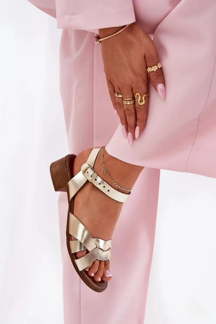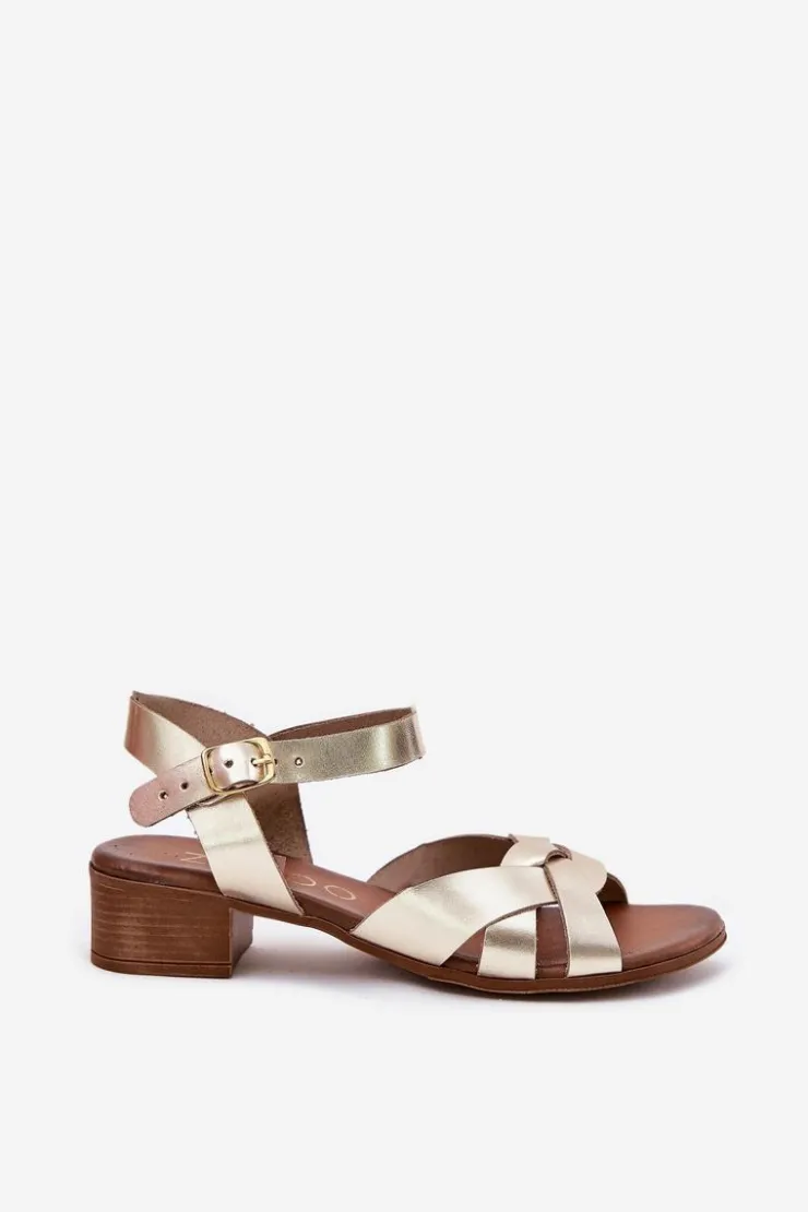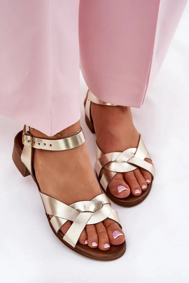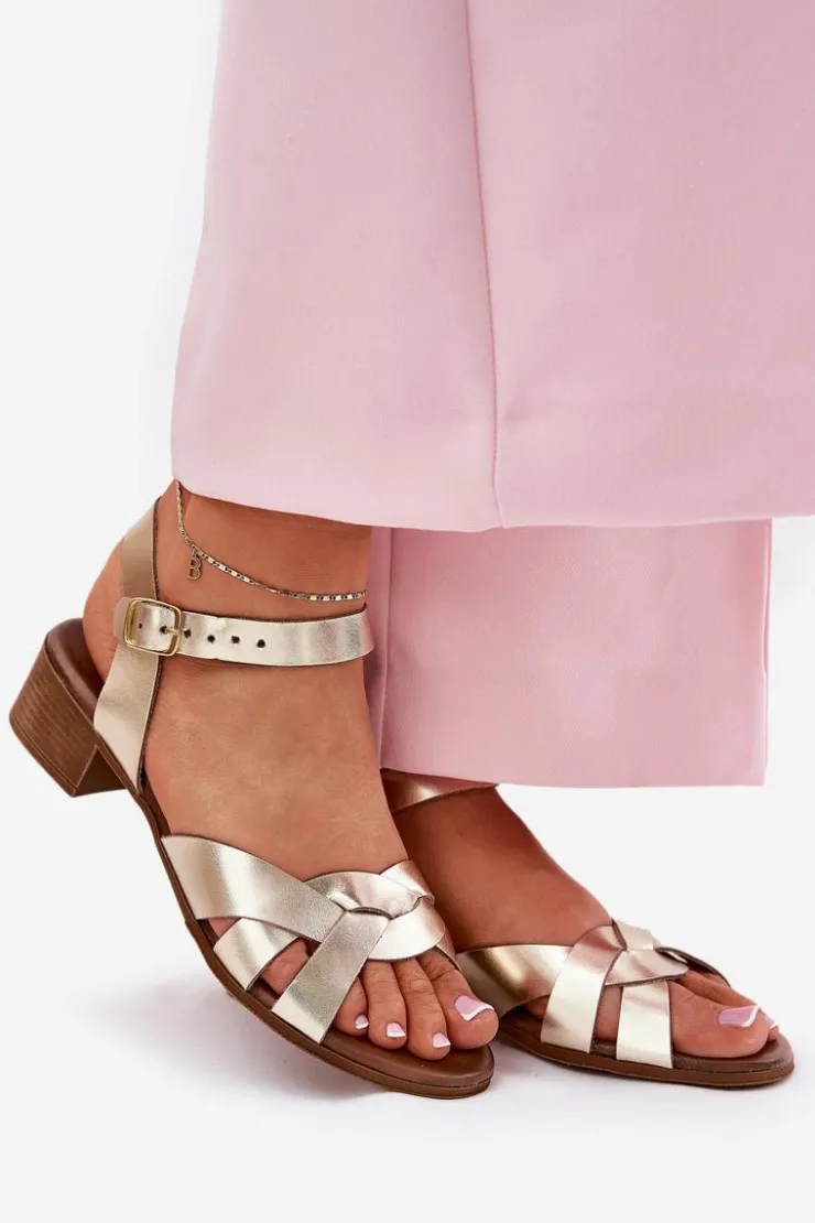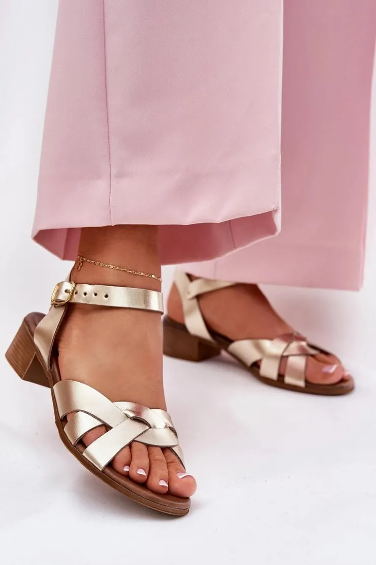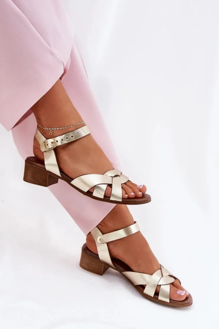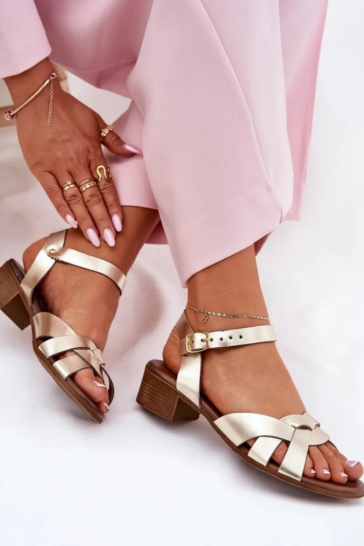 Damskie Zazoo Skórzane Sandały Na Delikatnym Obcasie 40372 Złote