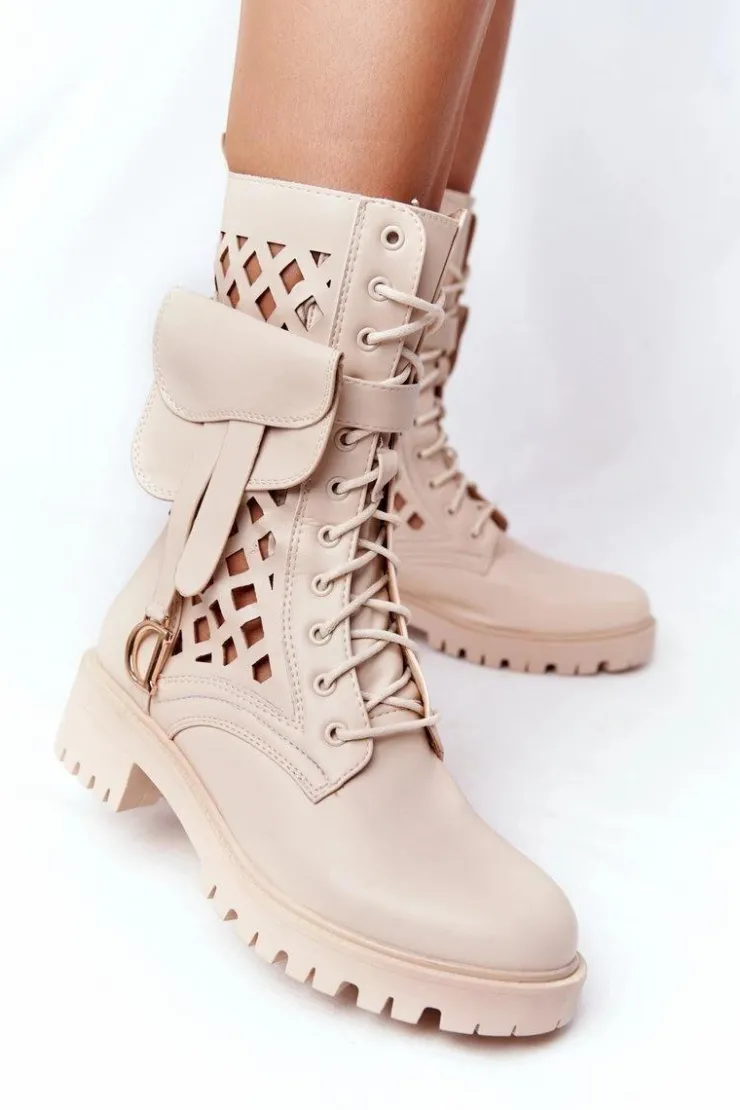 Ażurowe botki z odpinaną nerką. Workery w całości wykonane są z eko skóry. Botki świetnie wpiszą się w stylizacje glam rock lub grunge. Koniecznie sprawdź całą naszą kolekcję damskich botków! Przy wyborze rozmiaru prosimy sugerować się tabelą rozmiarów.