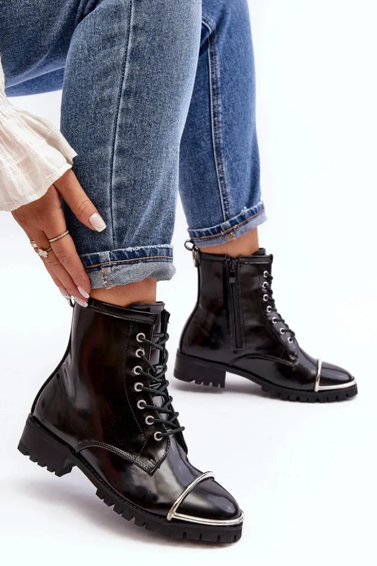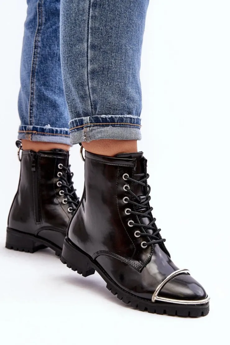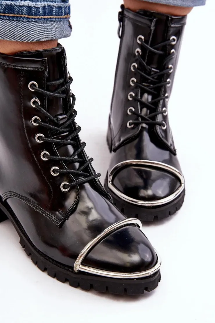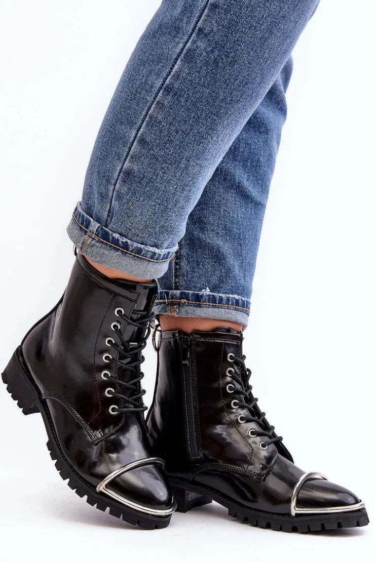 Discount Boto Botki Damskie Lu Boo Czarne Workery ze Stalową Oprawą Jacksy