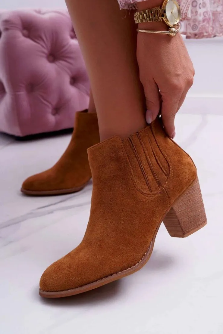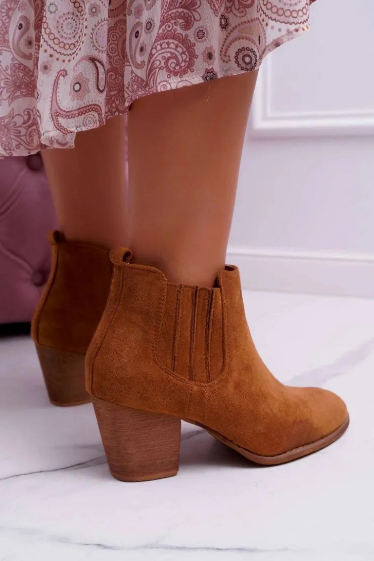 Discount Boto Botki Damskie Na Obcasie Zamszowe Camel Gomen