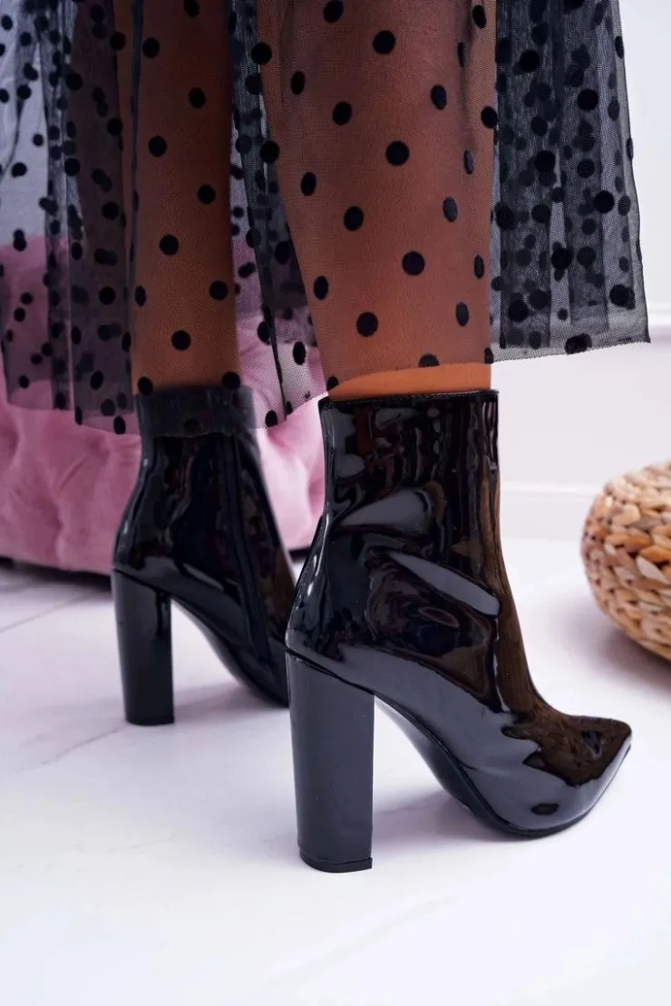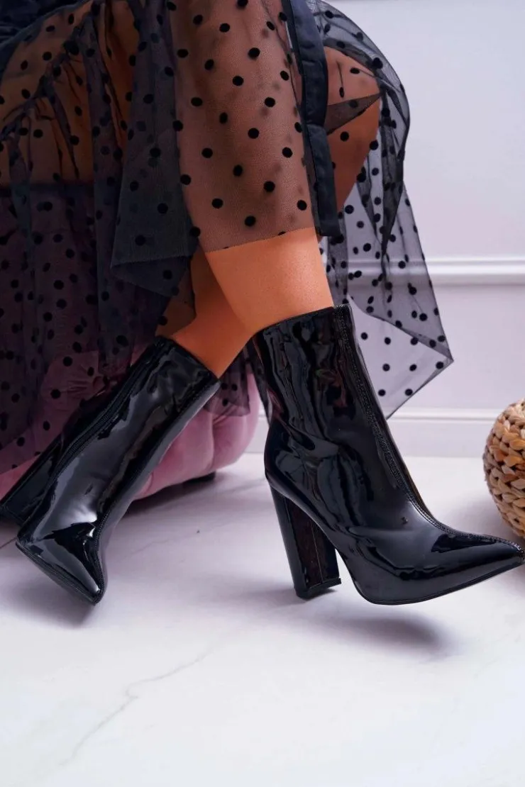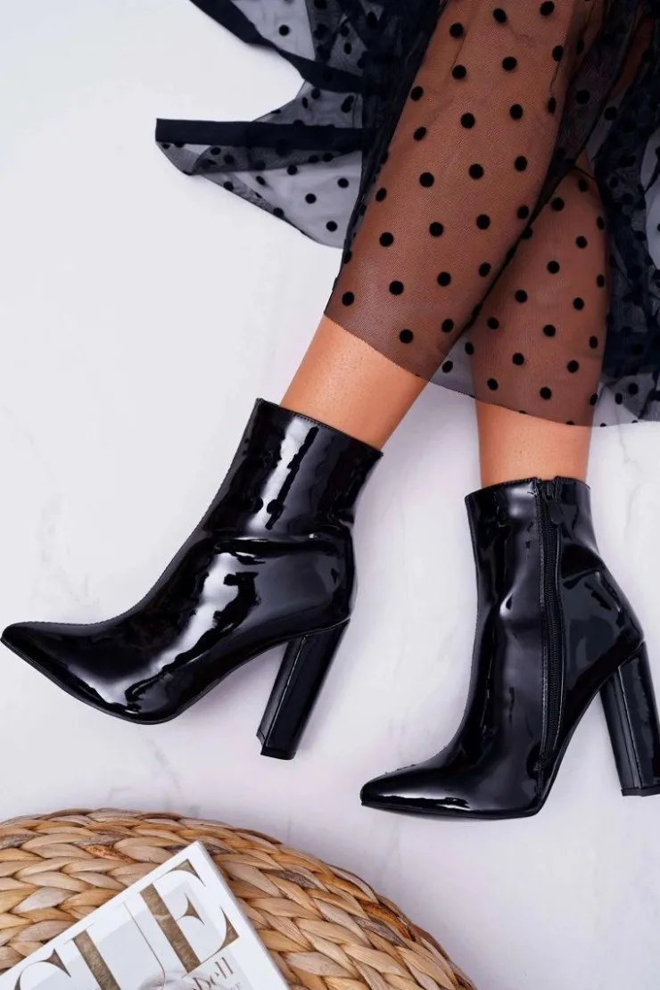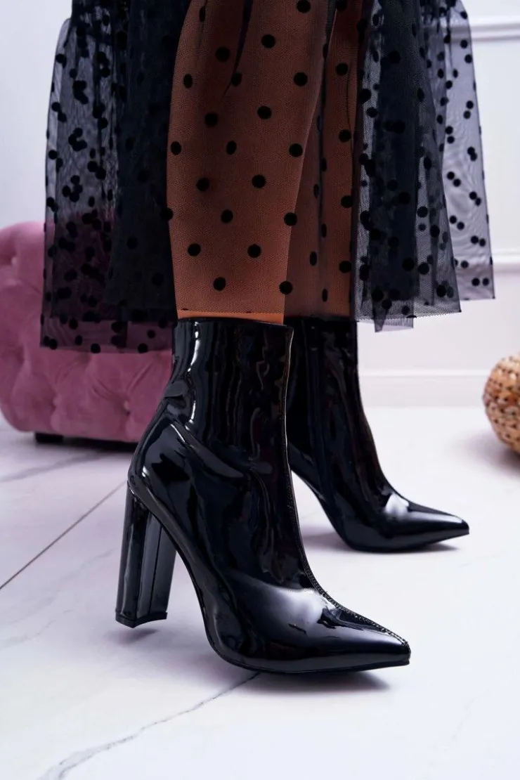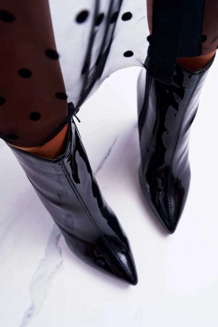 Discount Boto Botki Damskie Na Słupku W Szpic Lakierowane Czarne Demens