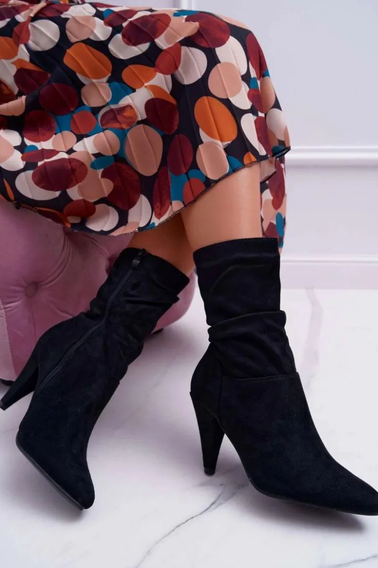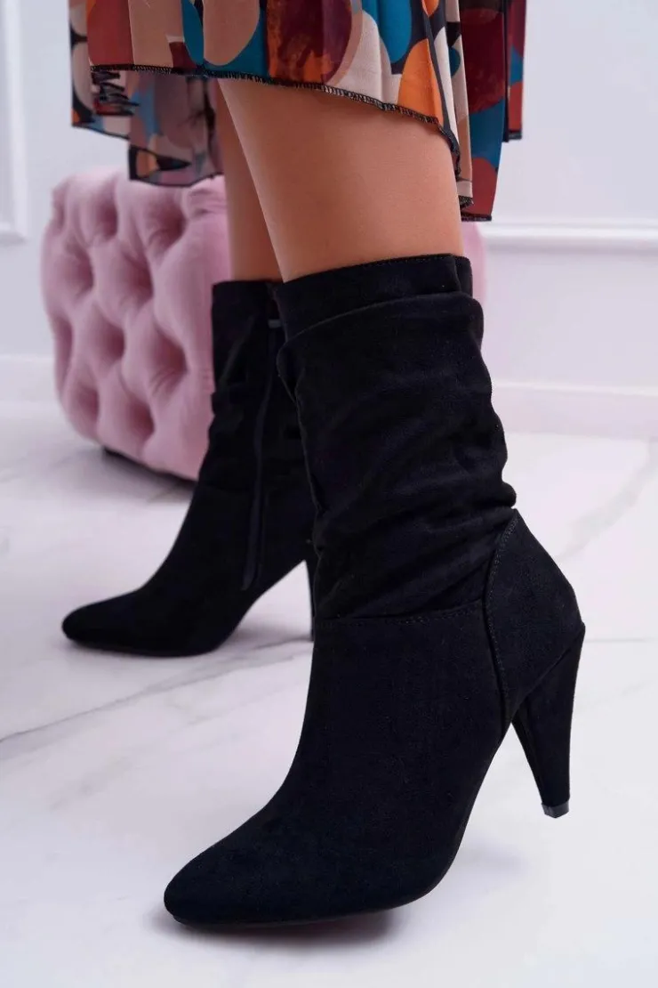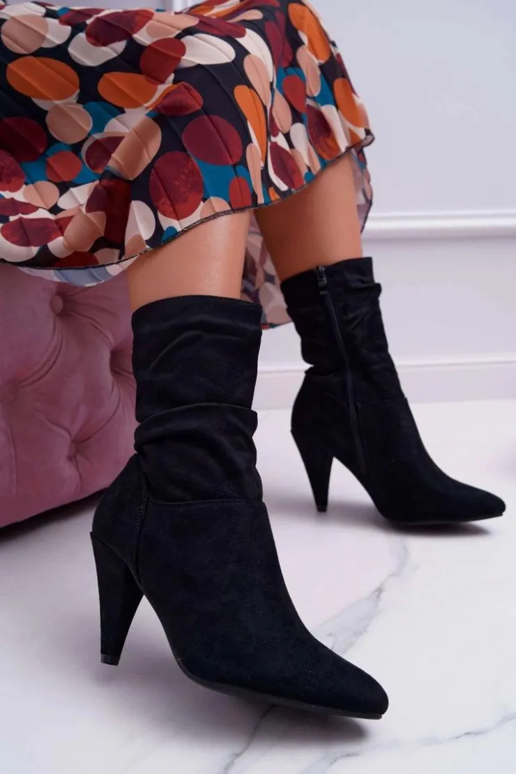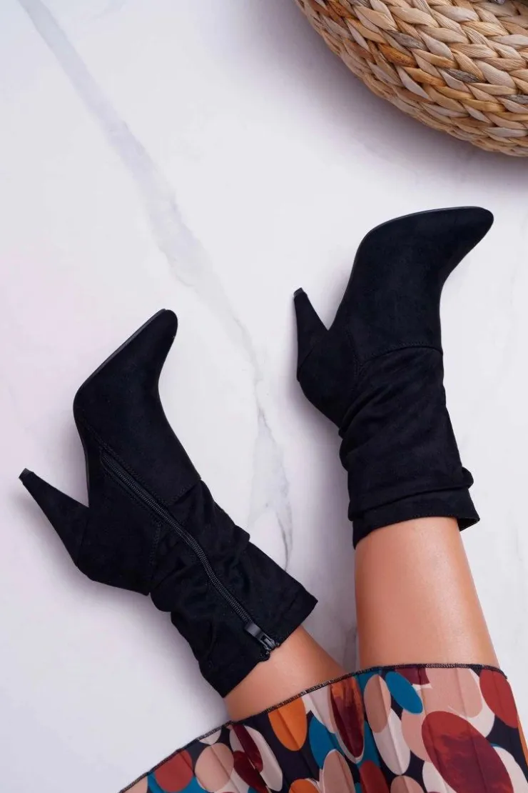 Discount Boto Botki Damskie Na Słupku Za Kostkę Ocieplane Czarne Temma