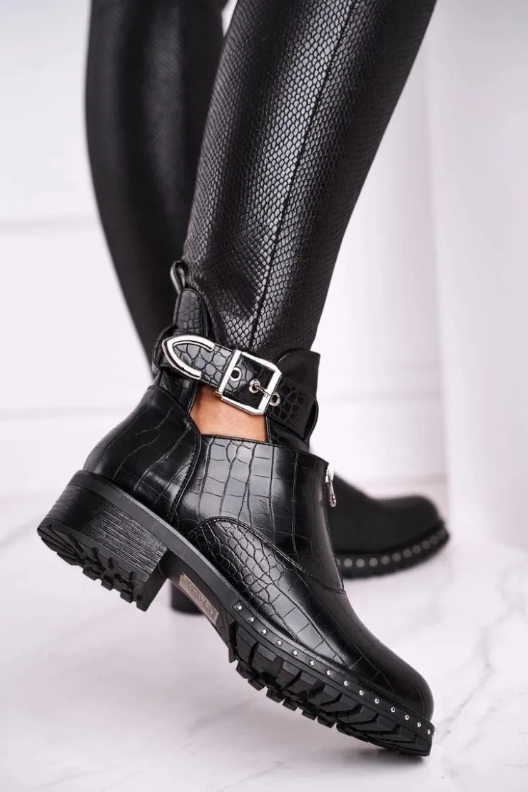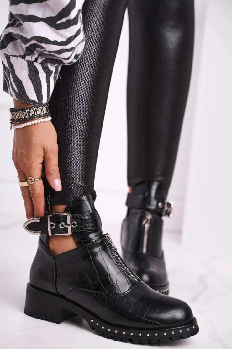 Discount Boto Botki Damskie Z Wycięciami Czarne Joan