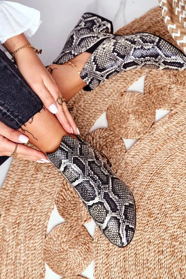 Discount Boto Botki Damskie Z Wycięciami Skórzane Wężowe Visconi 2625804