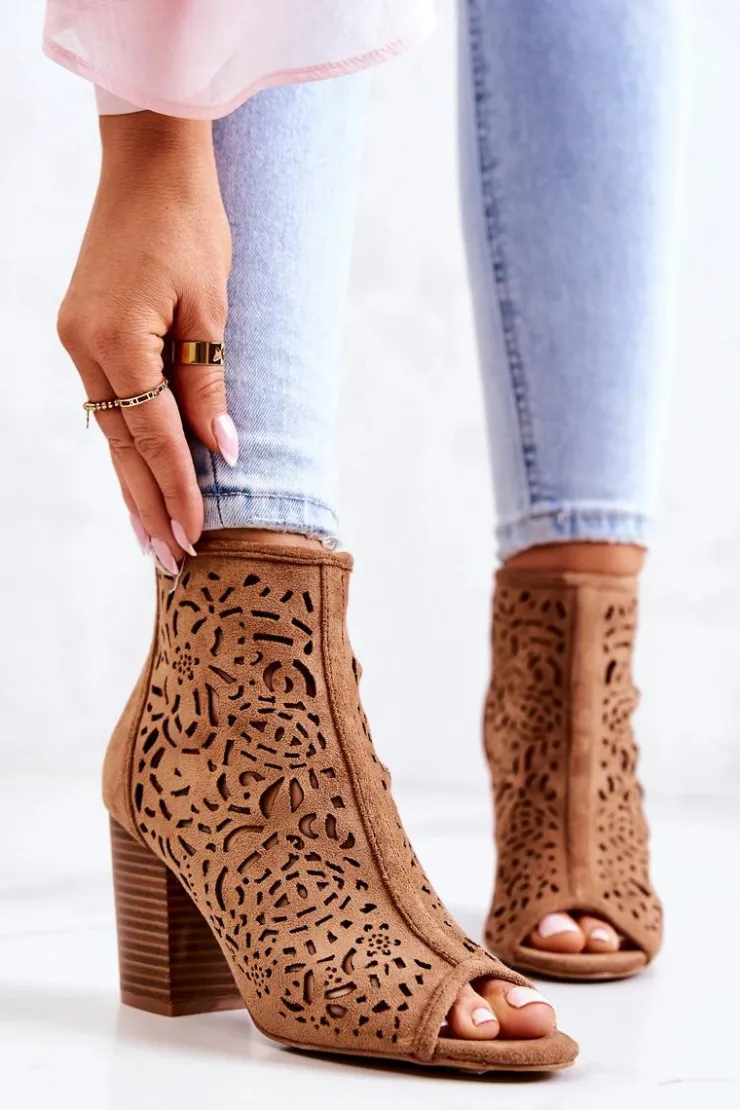 Botki to nieodłączny element kobiecych stylizacji. Wykonane z zamszowej eko skóry. Klasyczne botki z wyciętymi palcami są zapinane na suwak z tyłu cholewki. Obcas w postaci słupka optycznie wysmukli nogę. Ażurowy wzorek sprawi, że buty będą cudownie prezentować się na nodze! Koniecznie sprawdź także pozostałą naszą kolekcję botków! Przy wyborze rozmiaru prosimy sugerować się tabelą rozmiarów.