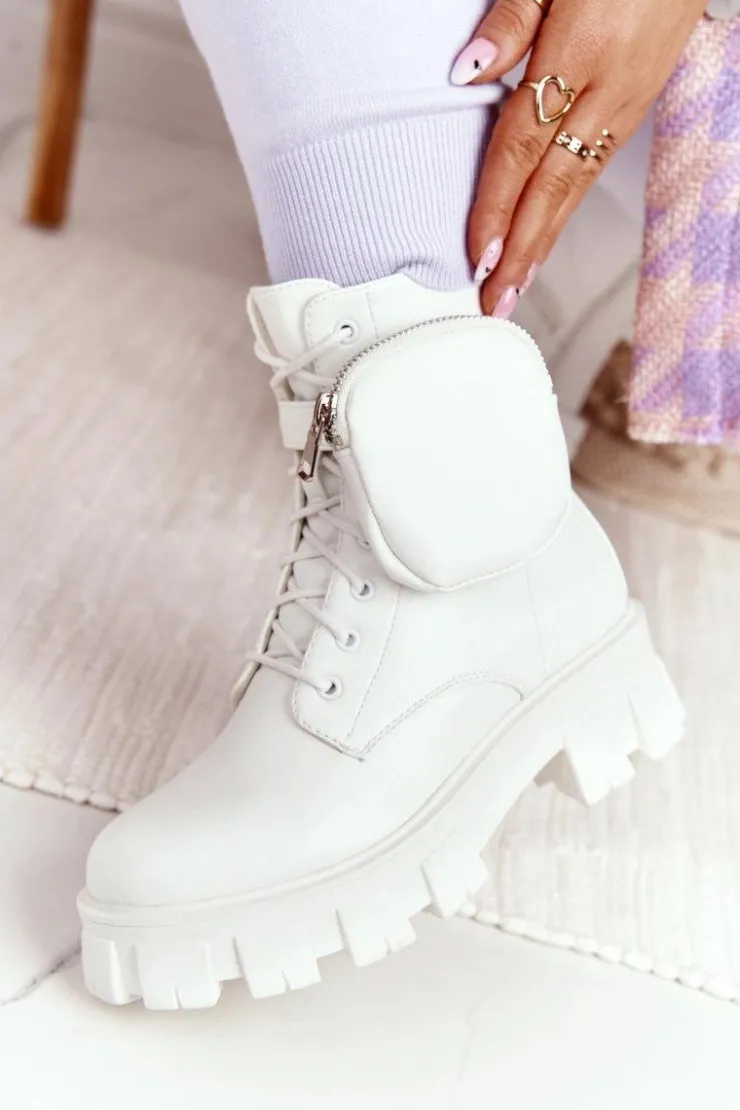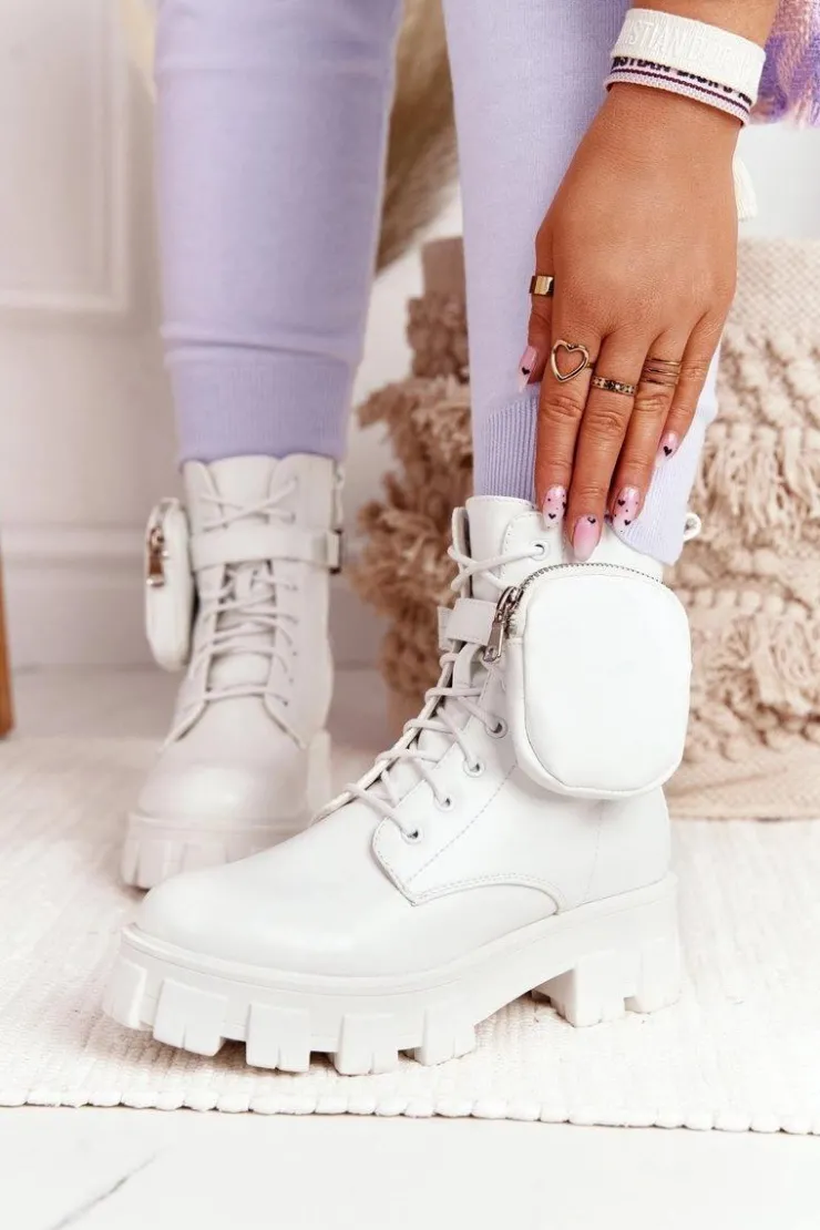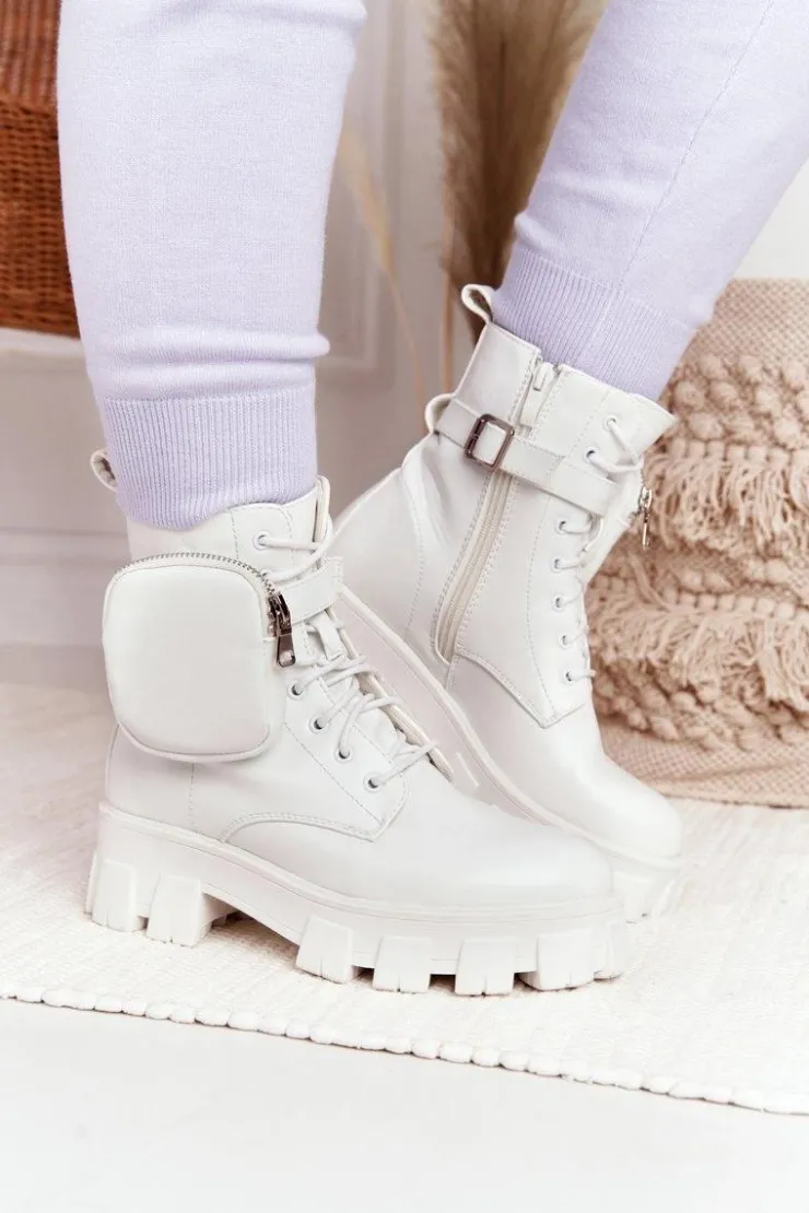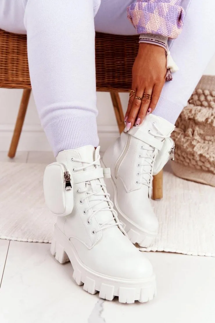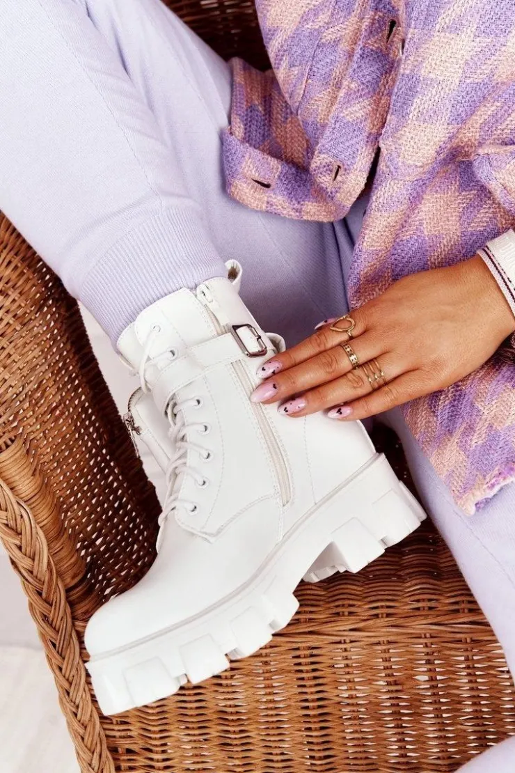 Discount Boto Botki Workery Na Platformie z Nerką Białe Saturday