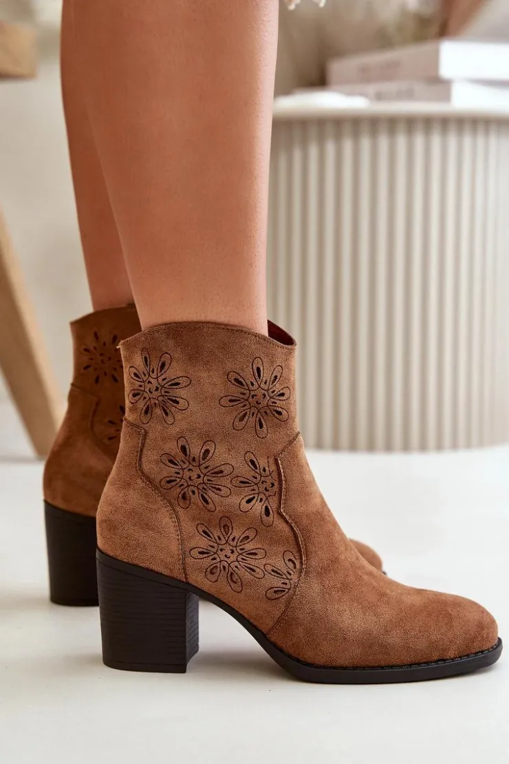 Botki damskie od marki Jezzi to doskonałe połączenie stylu i wygody, idealne na chłodniejsze dni. Model ten wyróżnia się eleganckim słupkowym obcasem, który zapewnia stabilność oraz subtelnie wydłuża sylwetkę. Zapinane na praktyczny zamek, botki są łatwe do zakładania i zdejmowania, co zwiększa komfort ich użytkowania. Ażurowa cholewka nadaje im unikalnego charakteru. Wkładka wykonana ze skóry naturalnej. Te stylowe botki doskonale komponują się zarówno z casualowymi, jak i bardziej eleganckimi stylizacjami. Przy wyborze rozmiaru prosimy sugerować się tabelą rozmiarów.