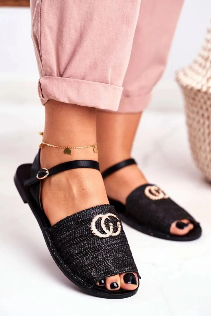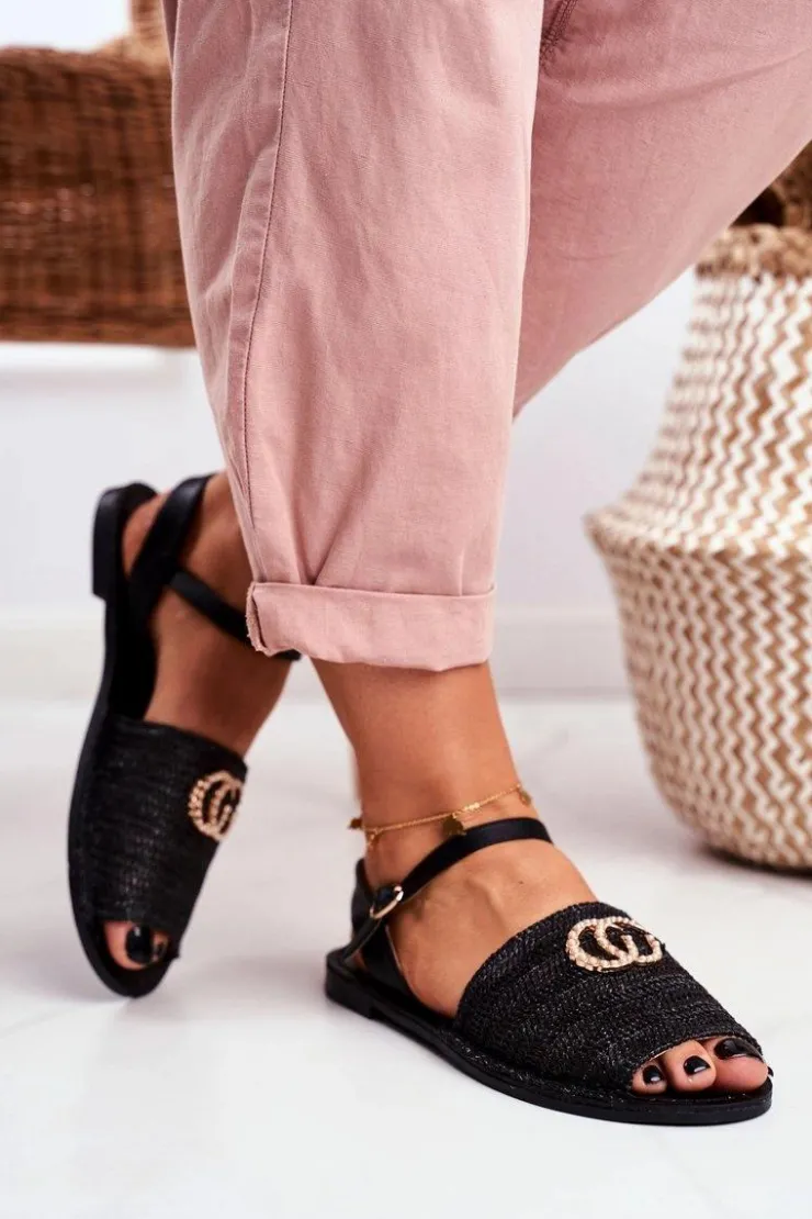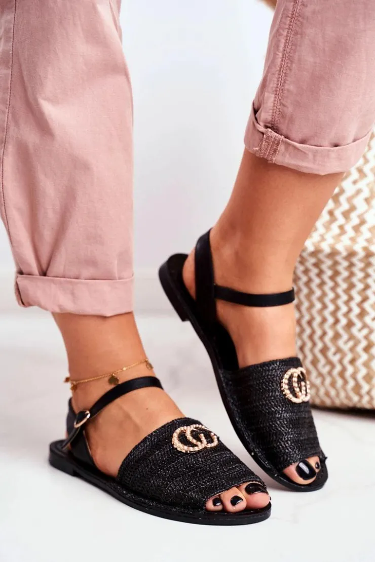 Discount Boto Czarne Damskie Płaskie Sandałki Lu Boo Plecione Felicia