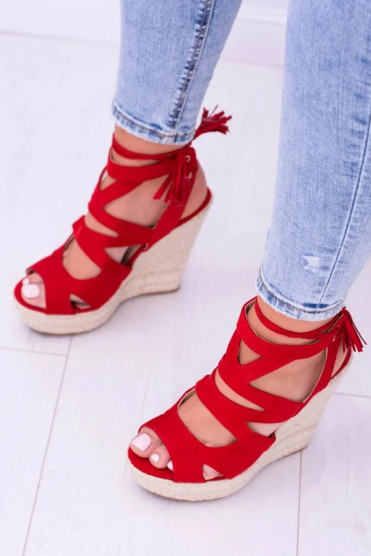 Discount Boto Czerwone Zamszowe Sandały Na Koturnie Nowelio