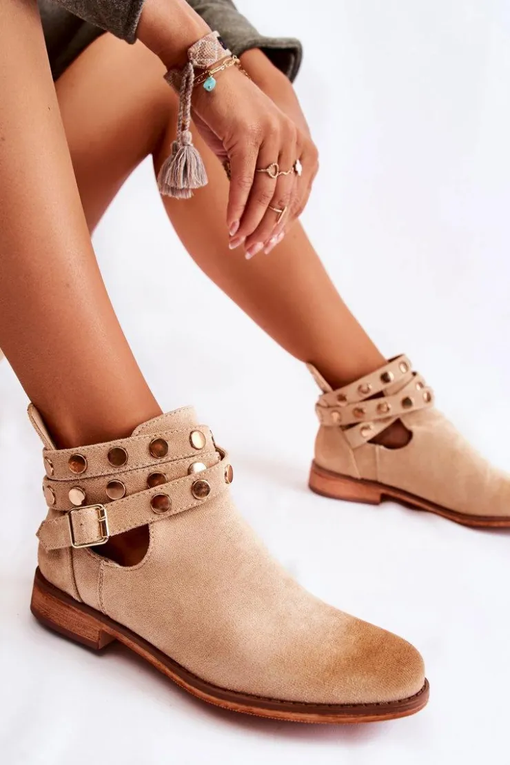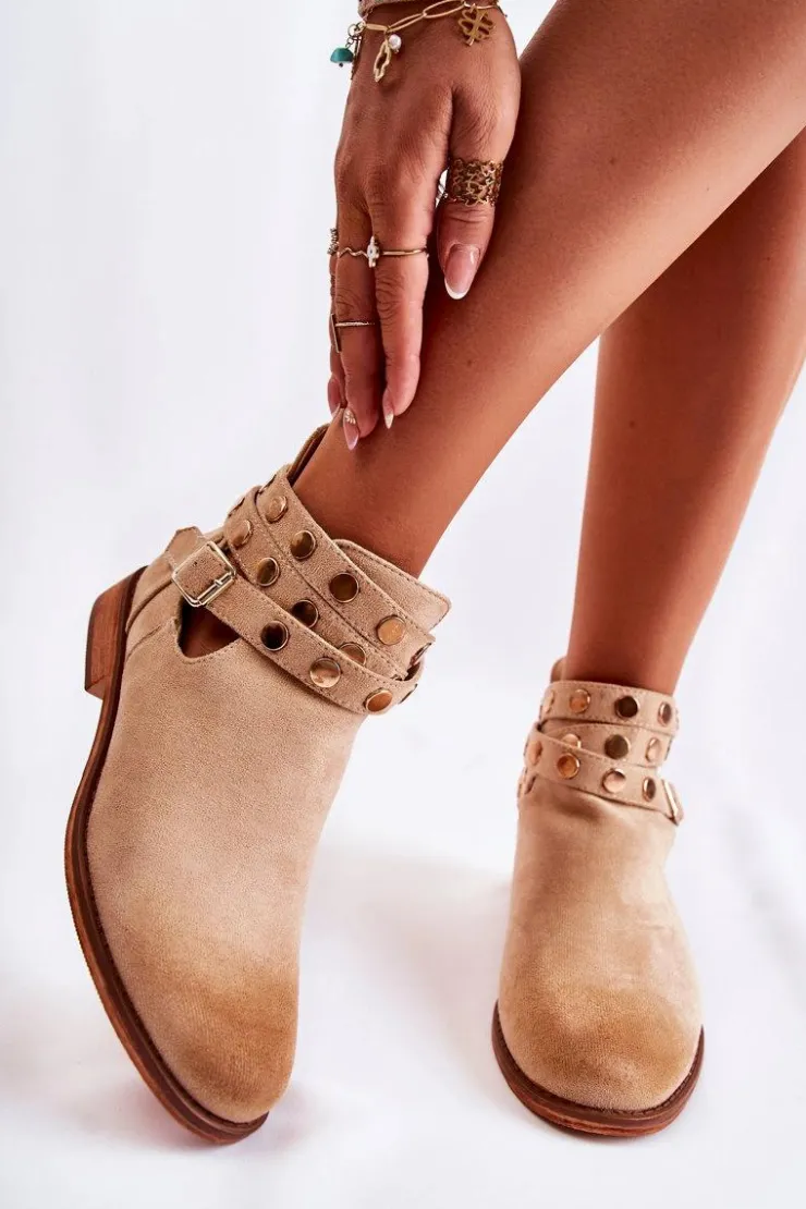 Wyjątkowe botki damskie z dżetami na paskach oraz z tyłu cholewki. Botki wykonane są z eko zamszu. Miękka wkładka z eko skóry oraz wygodny, płaski obcas zadbają o Twój komfort. Botki dopełnią wiele Twoich stylizacji! Posiadają wycięcia z boku cholewki. Podeszwa antypoślizgowa. Koniecznie sprawdź całą naszą kolekcję damskich botków! Przy wyborze rozmiaru prosimy sugerować się tabelą rozmiarów.