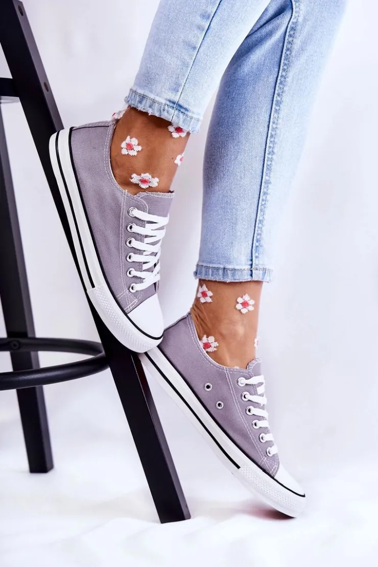 Klasyczne, wiązane trampki damskie. Buty posiadają gumową podeszwę, która jest dodatkowo antypoślizgowa. Miękka cholewka została wykonana z materiału tekstylnego. Ponadczasowy model, który powinnaś mieć w swojej szafie! Nosek wzmacniany gumowym tworzywem. Wygodna, materiałowa wkładka zapewni komfort podczas użytkowania. Przy wyborze rozmiaru prosimy sugerować się tabelą rozmiarów.