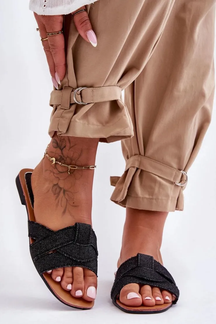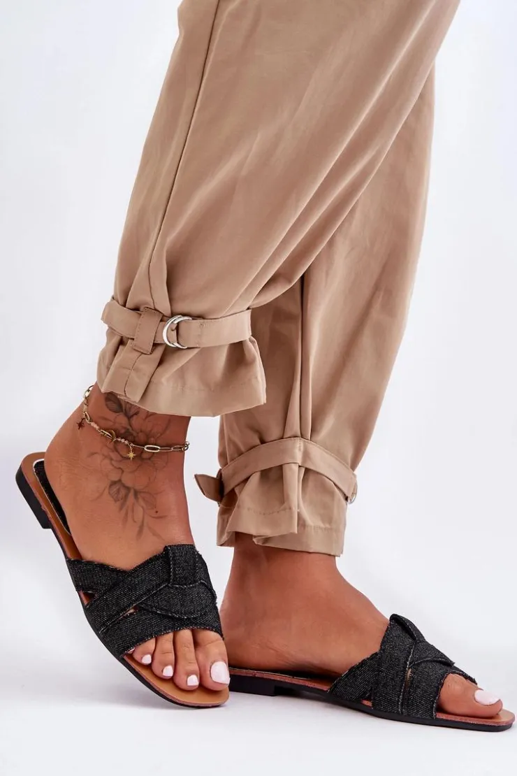 Damskie klapki na płaskim obcasie z gumową, antypoślizgową podeszwą świetnie sprawdzą się podczas codziennego użytkowania. Cholewka została wykonana z materiału tekstylnego, natomiast wkładka z połączenia tworzywa sztucznego i materiału. Ten klasyczny model charakteryzuje się przeplatanymi paskami. Prezentowany model zapewni wysoki komfort, nawet w najgorętsze dni! Przy wyborze rozmiaru prosimy sugerować się tabelą rozmiarów.