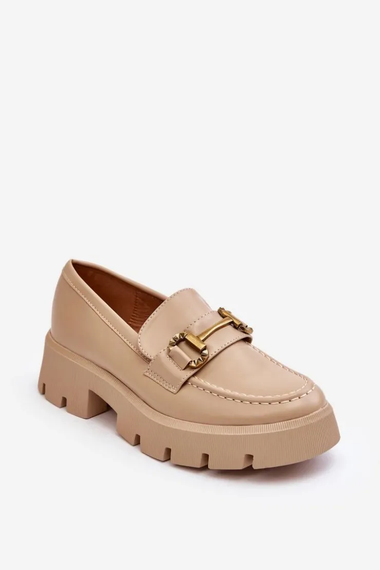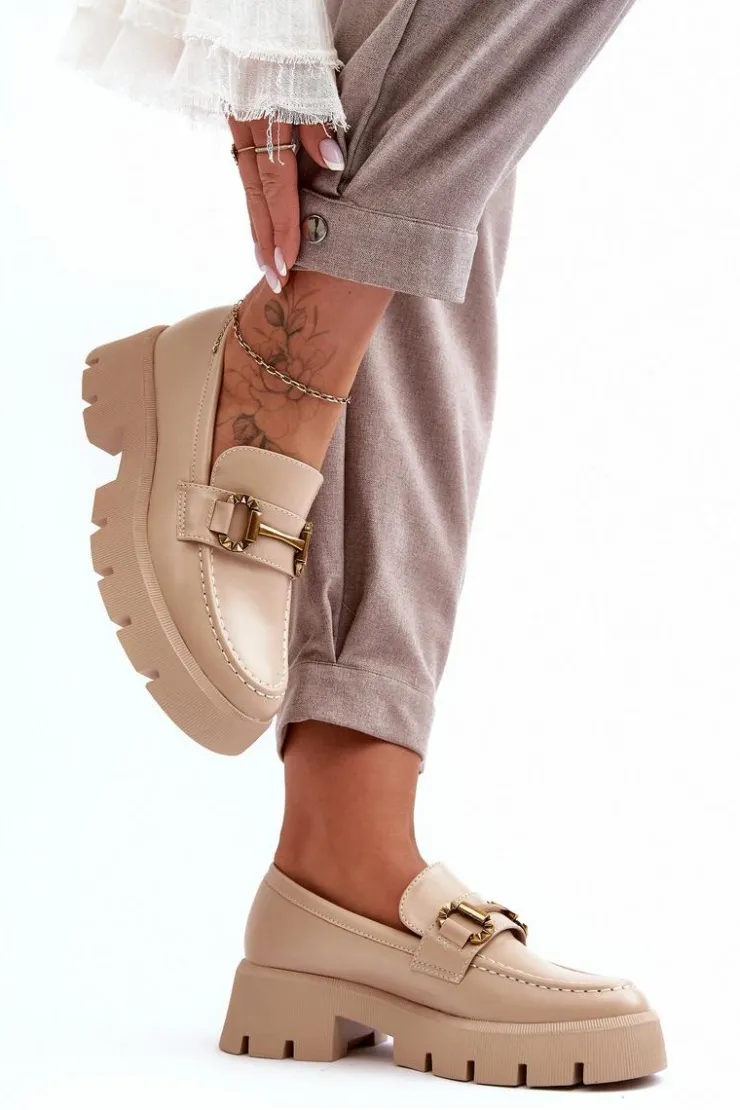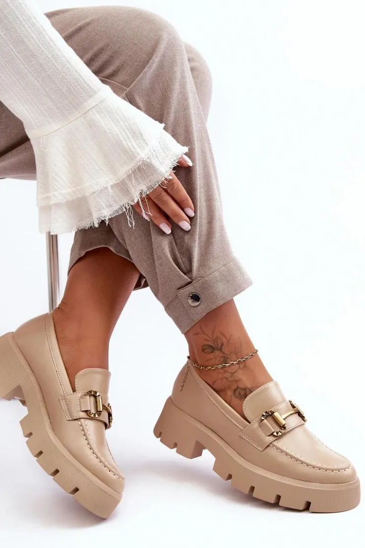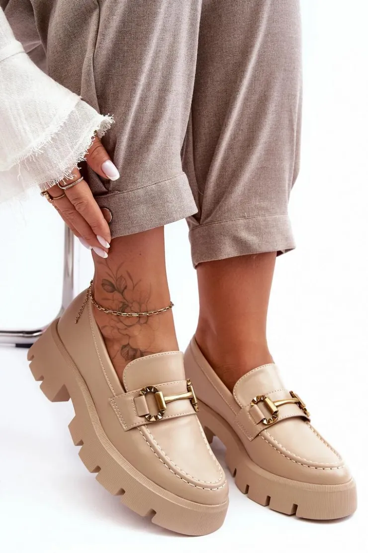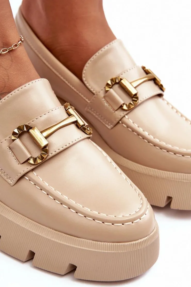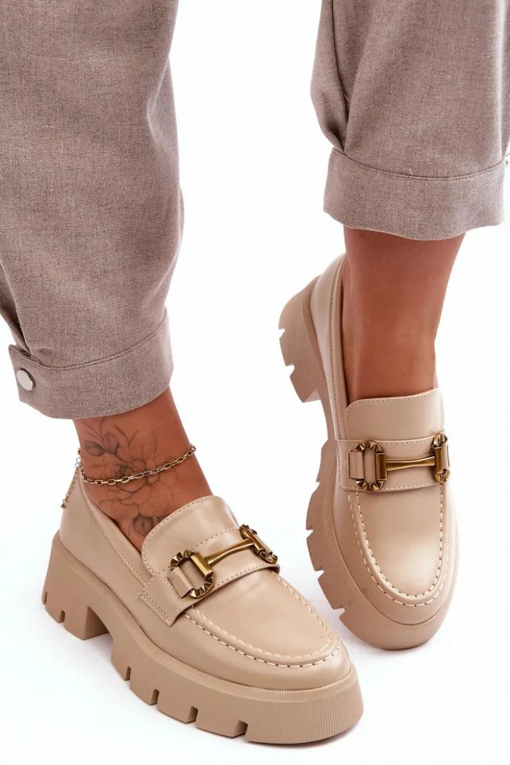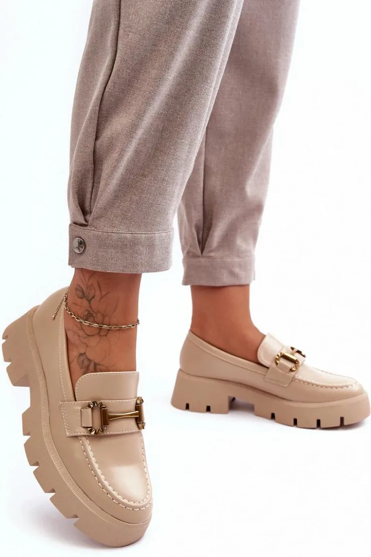 Discount Boto Damskie Półbuty Loafery Z Ozdobą Beżowe Peuria