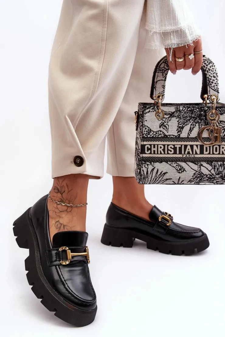 Discount Boto Damskie Półbuty Loafery Z Ozdobą Czarne Peuria