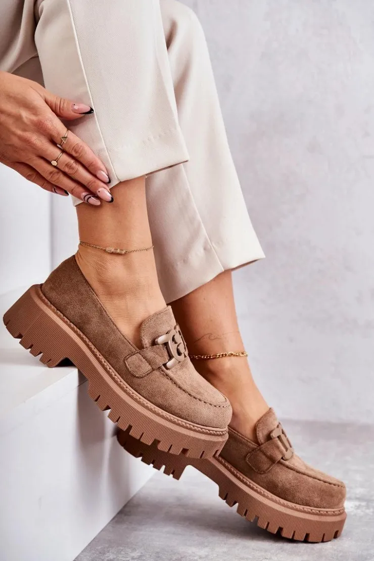 Klasyczne półbuty zostały wykonane z eko zamszu. Na przodzie charakterystyczne zdobienie. Buty te posiadają platformę oraz płaski obcas. Podeszwa ze żłobieniami świetnie odizoluje od nierównego podłoża. Wygodne, a zarazem modne półbuty świetnie sprawdzą się do pracy, na zakupy czy na spotkanie z przyjaciółmi. Miękka wkładka wykonana z eko skóry zapewni komfort podczas użytkowania. Koniecznie musisz je mieć! Przy wyborze rozmiaru prosimy sugerować się tabelą rozmiarów.