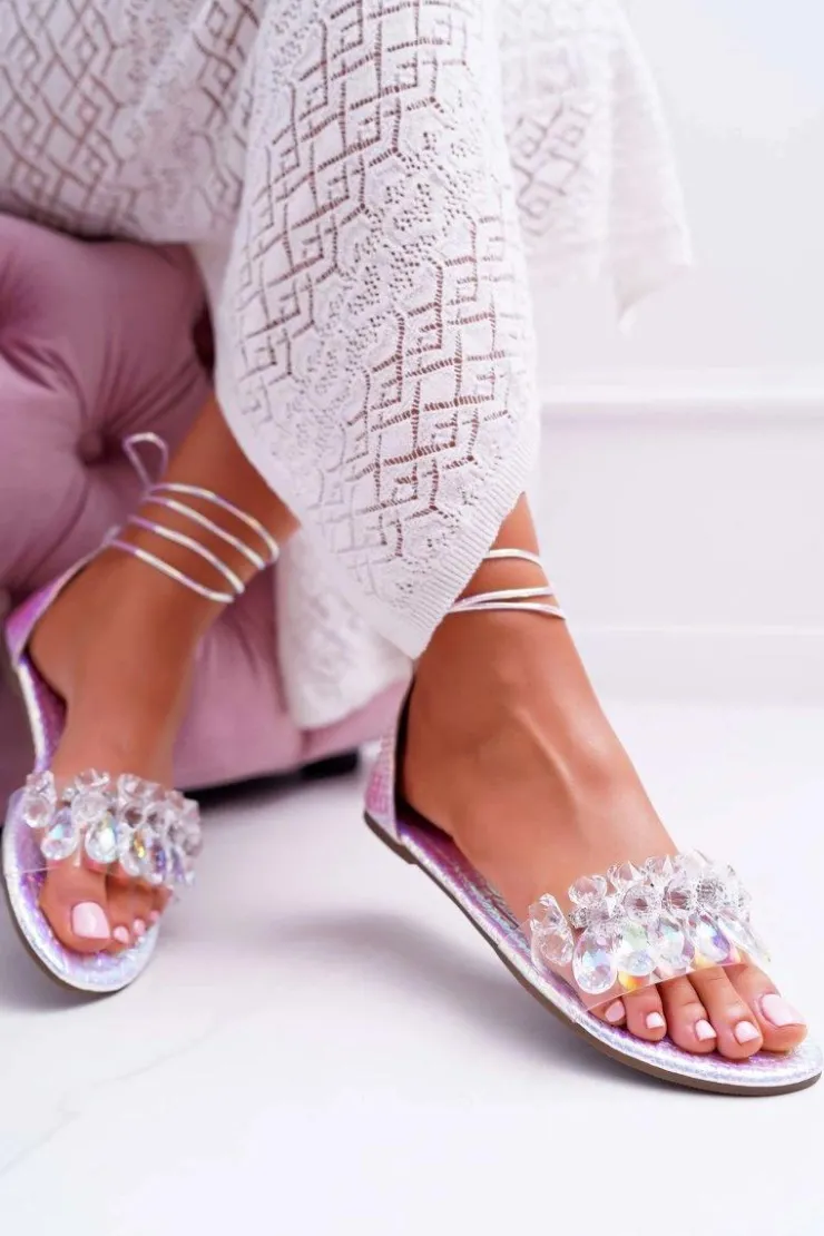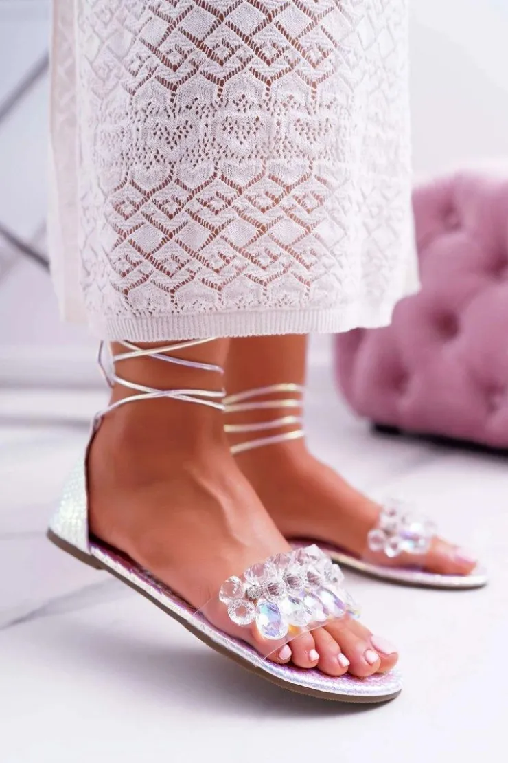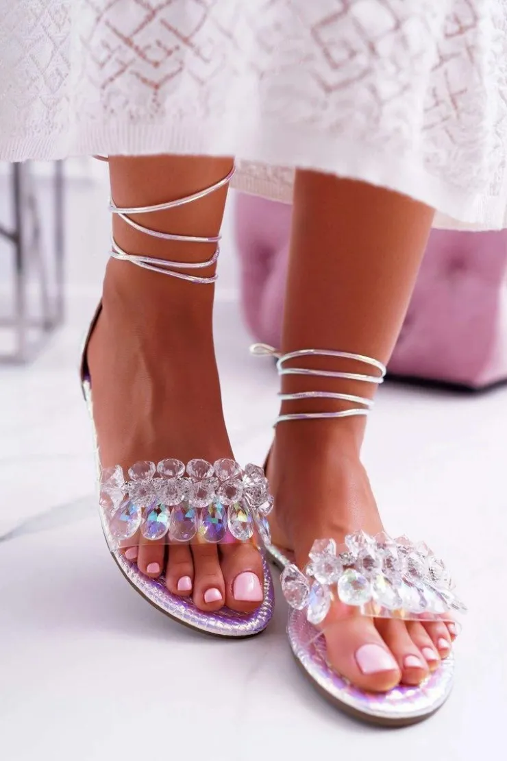 Sandały to nieodłączny element kobiecych letnich stylizacji. Można je założyć dosłownie do wszystkiego! Ten model wyróżnia się kryształowymi zdobieniami oraz efektownym wiązaniem wokół kostki. Przy wyborze rozmiaru prosimy sugerować się tabelą rozmiarów, która dostępna jest po najechaniu bądź kliknięciu w dany rozmiar.