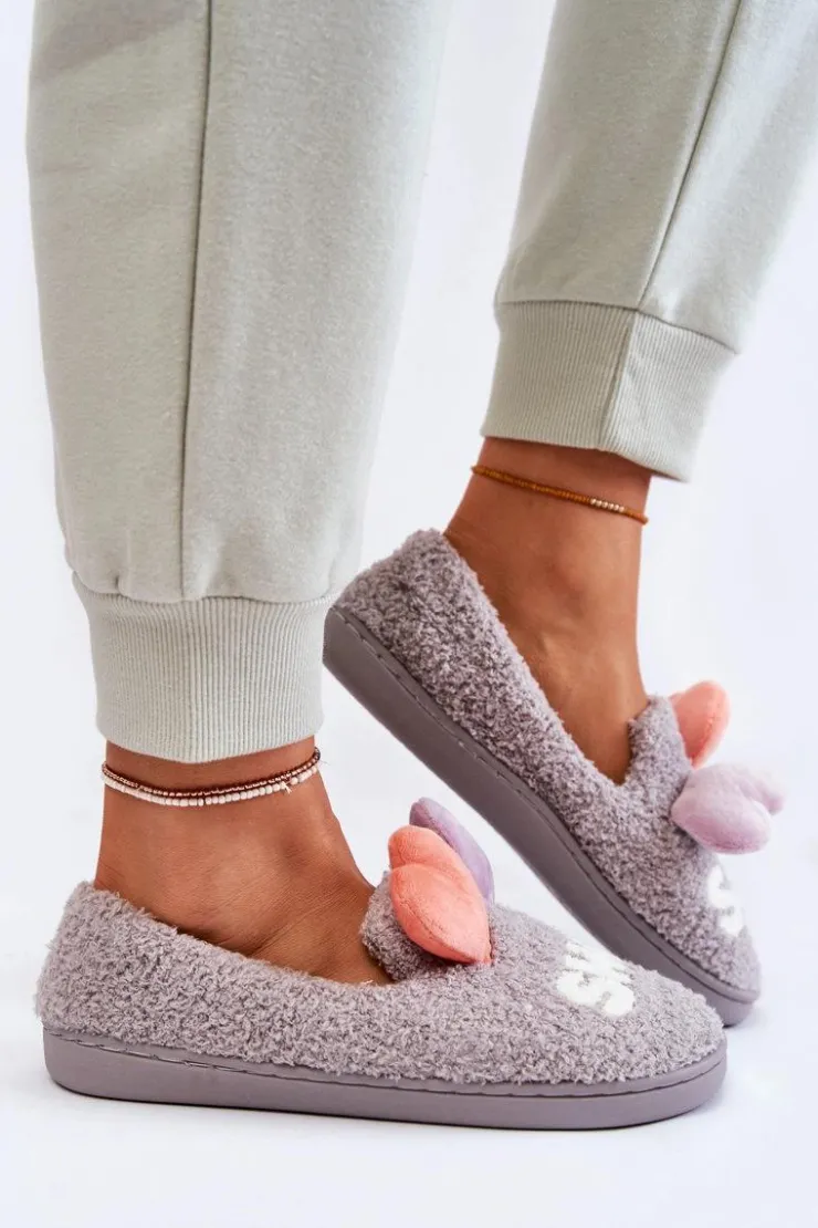 Wygodne papcie damskie zostały wykonane z miękkiego materiału tekstylnego zarówno na zewnątrz, jak i wewnątrz. Podeszwa z gumowego tworzywa jest antypoślizgowa. Papcie te świetnie izolują przed zimnem. Niezwykle wygodne i komfortowe podczas użytkowania. Papcie zostały ozdobione uszkami w kształcie serc oraz napisem na przodzie. Przy wyborze rozmiaru prosimy kierować tabelą rozmiarów.