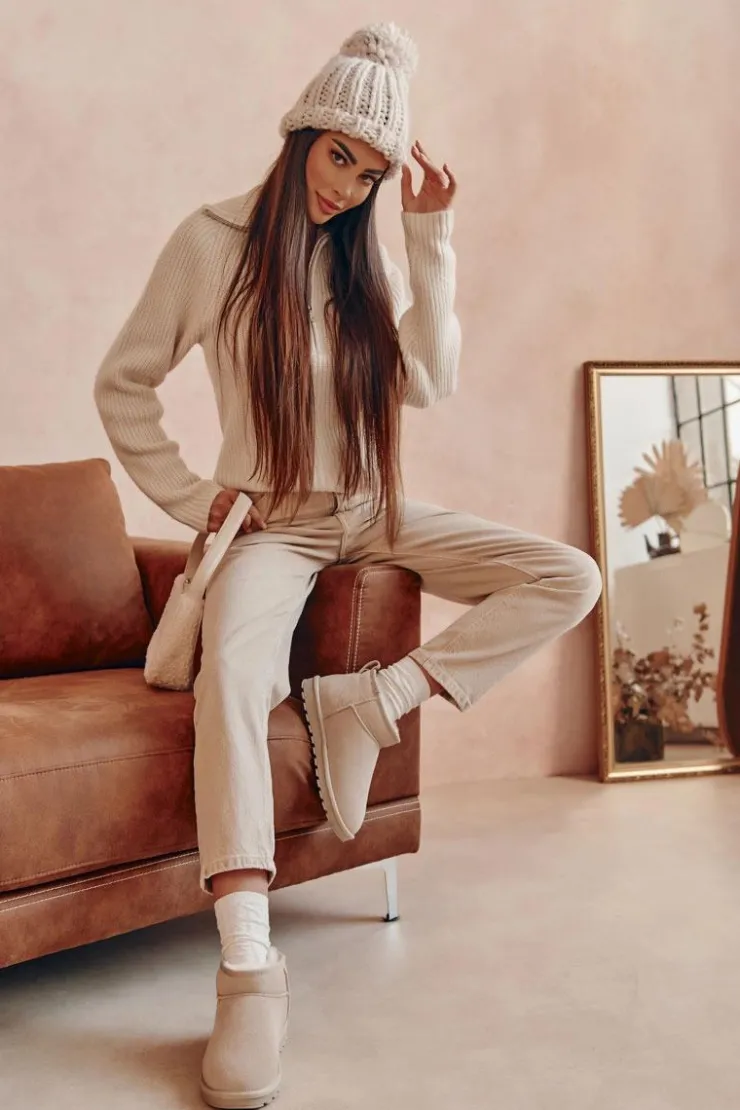 Klasyczne śniegowce idealnie sprawdzą się podczas chłodnych dni. Wykonane z wysokiej jakości naturalnych skór. Wnętrze butów zostało ocieplone grubym futerkiem ekologicznym. Ten klasyczny model dopasujesz do wielu stylizacji. Botki posiadają gumową platformę, która świetnie odizoluje od podłoża i jest dodatkowo antypoślizgowa. Powinnaś mieć ten model w swojej szafie! Przy wyborze rozmiaru prosimy sugerować się tabelą rozmiarów.