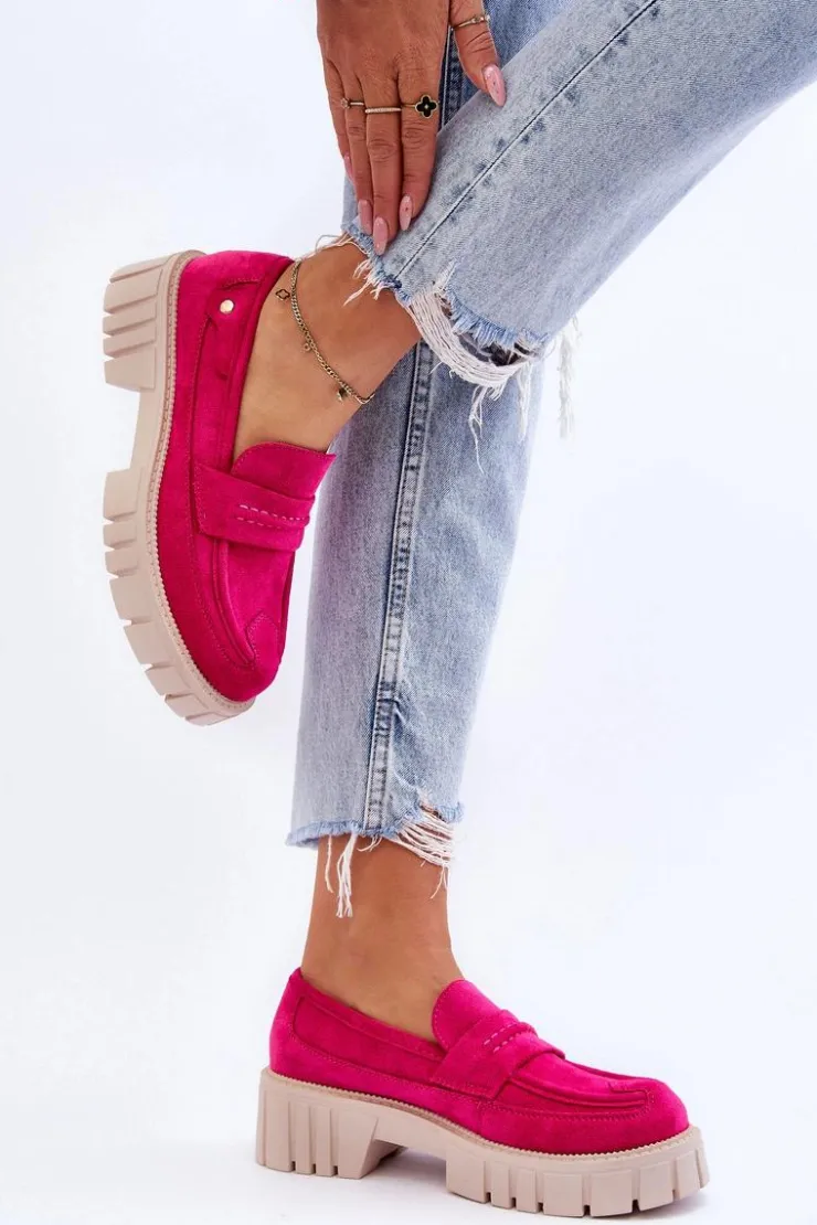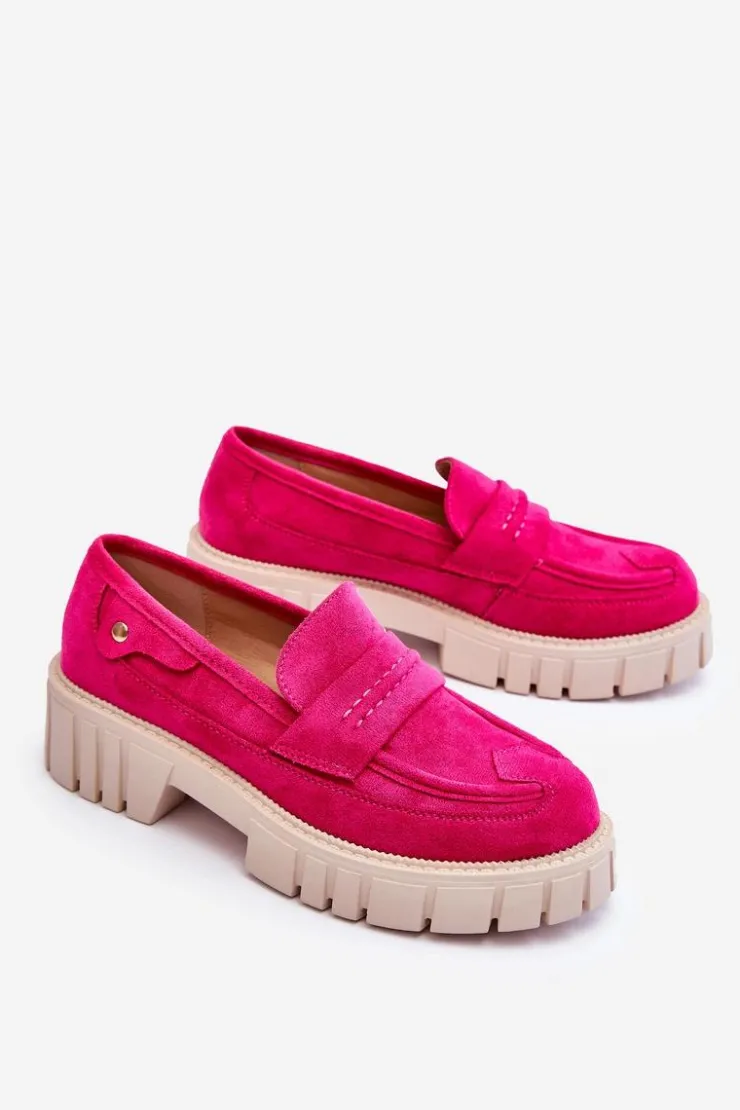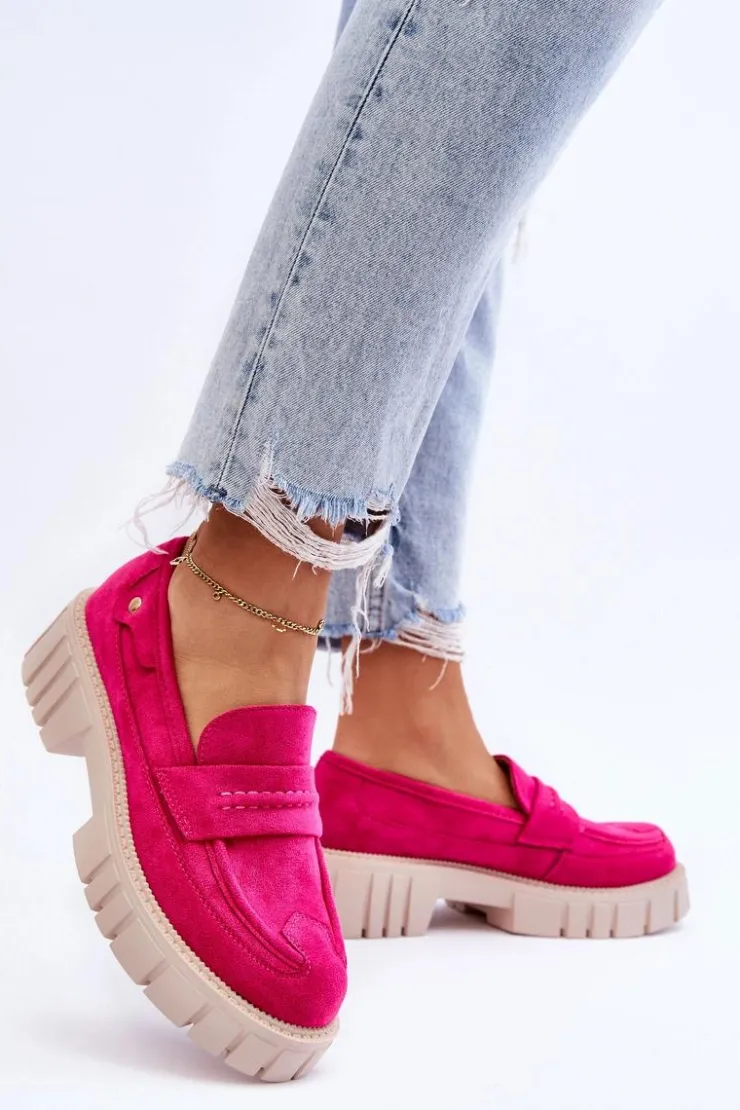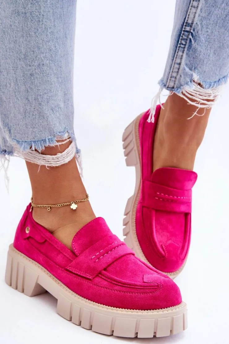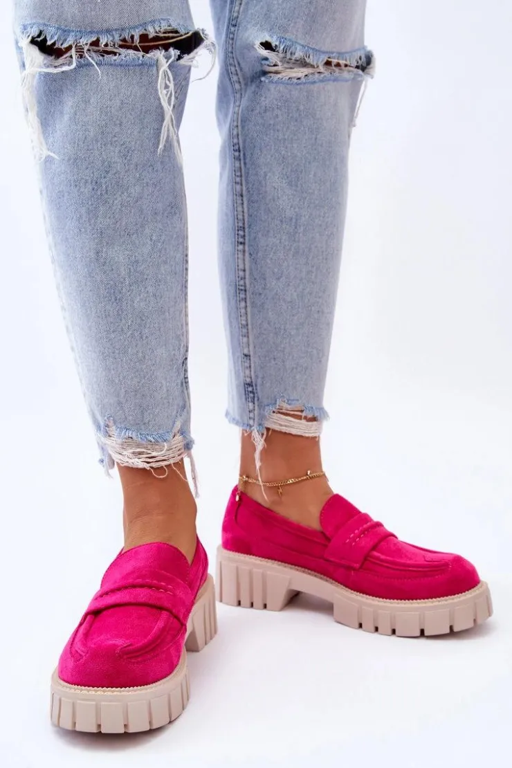 Świetne półbuty w stylu loaferów zostały wykonane z wysokiej jakości eko skóry z obszyciami. Charakterystyczne zdobienie w postaci paseczka na przodzie oraz nitu z boku cholewki. Posiadają masywną platformę oraz płaski obcas. Miękka wykonana z eko skóry wkładka zadba o komfort podczas użytkowania obuwia. Dodatkowo zapiętek jest usztywniany. Przy wyborze rozmiaru prosimy sugerować się tabelą rozmiarów.