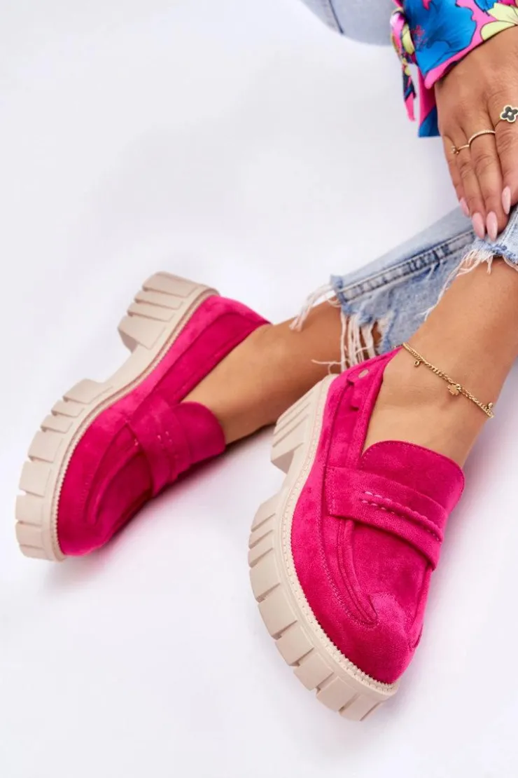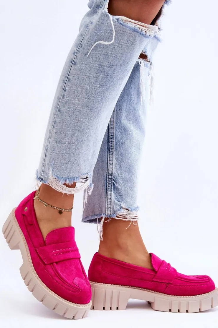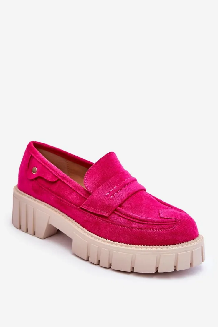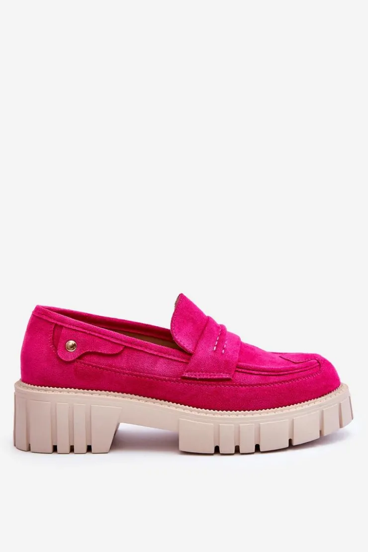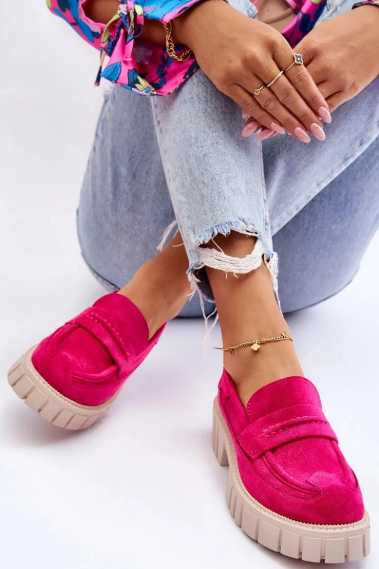 Świetne półbuty w stylu loaferów zostały wykonane z wysokiej jakości eko skóry z obszyciami. Charakterystyczne zdobienie w postaci paseczka na przodzie oraz nitu z boku cholewki. Posiadają masywną platformę oraz płaski obcas. Miękka wykonana z eko skóry wkładka zadba o komfort podczas użytkowania obuwia. Dodatkowo zapiętek jest usztywniany. Przy wyborze rozmiaru prosimy sugerować się tabelą rozmiarów.