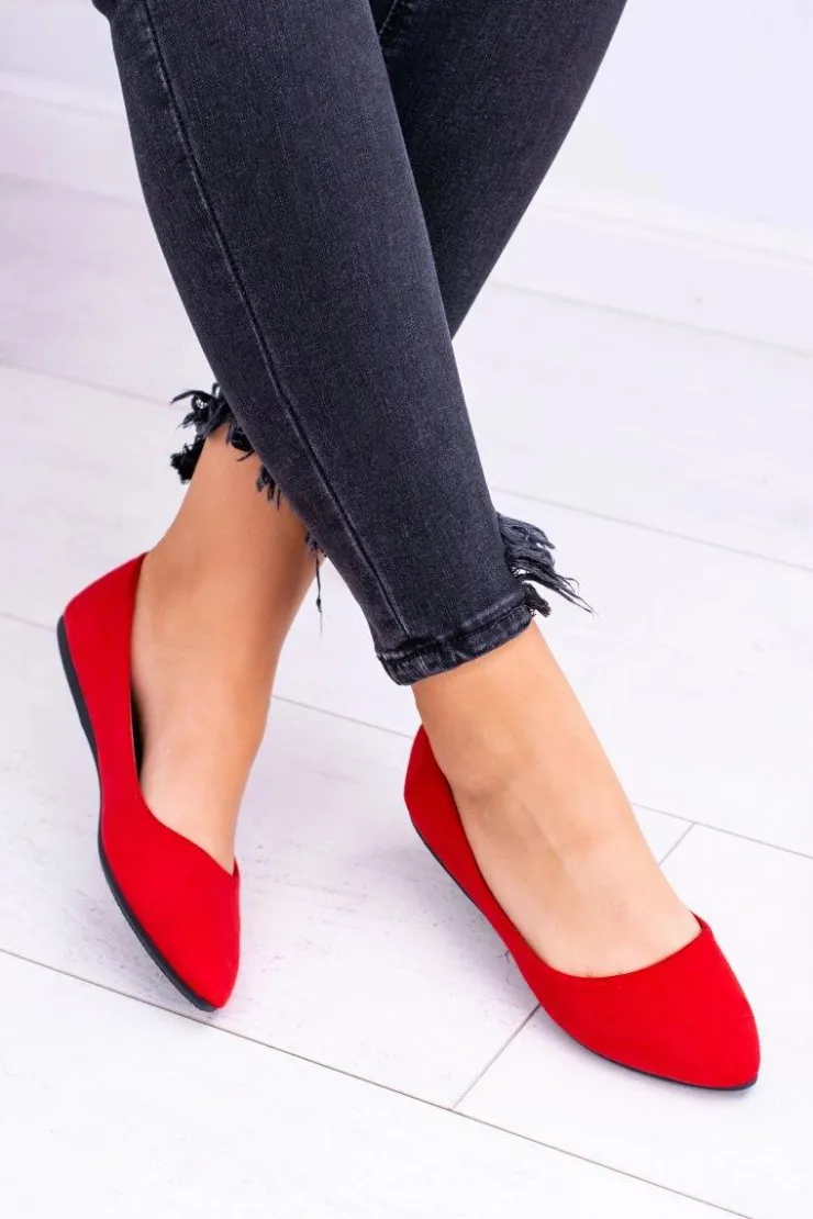Discount Boto Delikatne Baleriny W Szpic Zamszowe Czerwone Dermeno