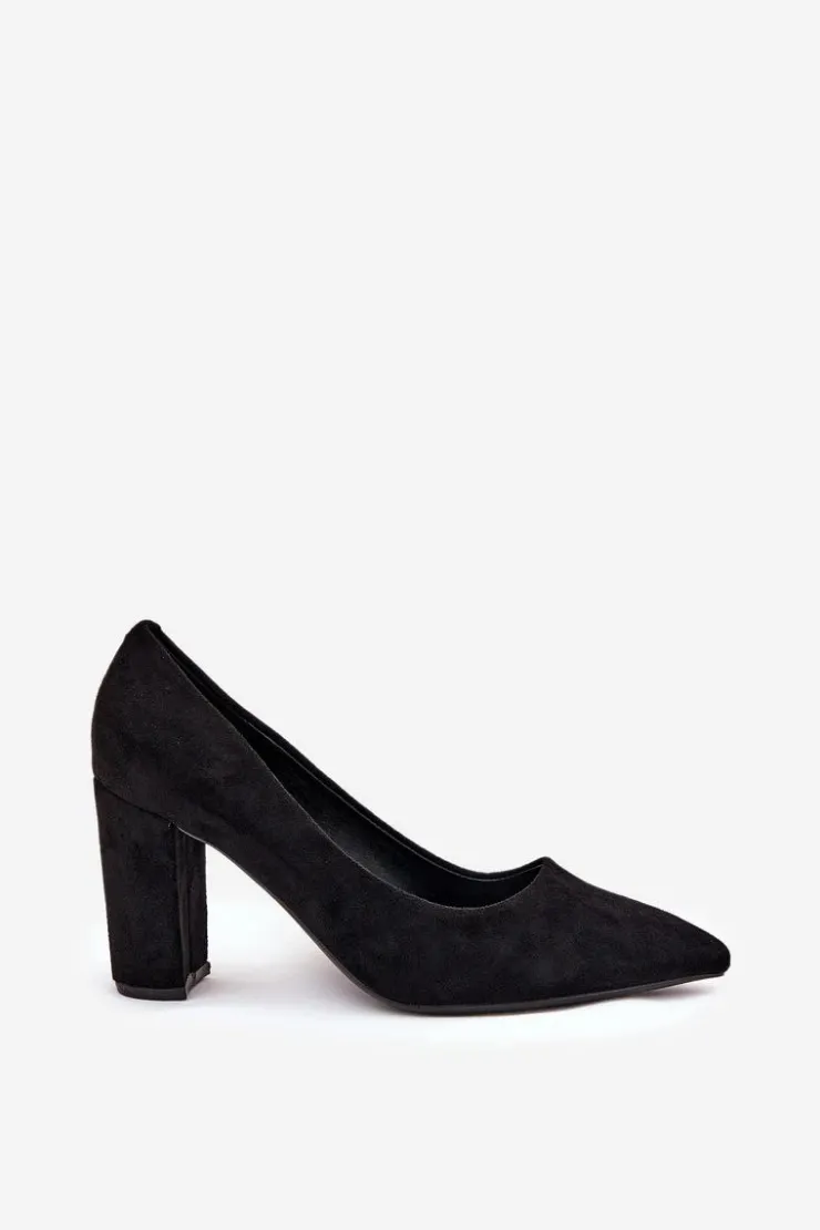 Czółenka wykonane z eko zamszu, osadzone na stabilnym obcasie typu słupek. Szpiczaste noski optycznie wysmuklają nogi, dodając sylwetce lekkości. Klasyczny fason sprawia, że będą idealnym wyborem na różne okazje – od formalnych spotkań po wieczorne wyjścia. Przy wyborze rozmiaru prosimy kierować się tabelą rozmiarów