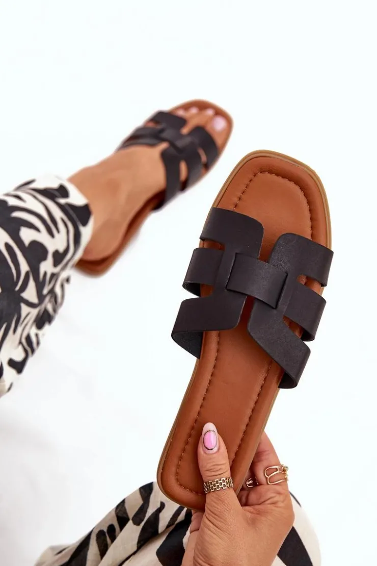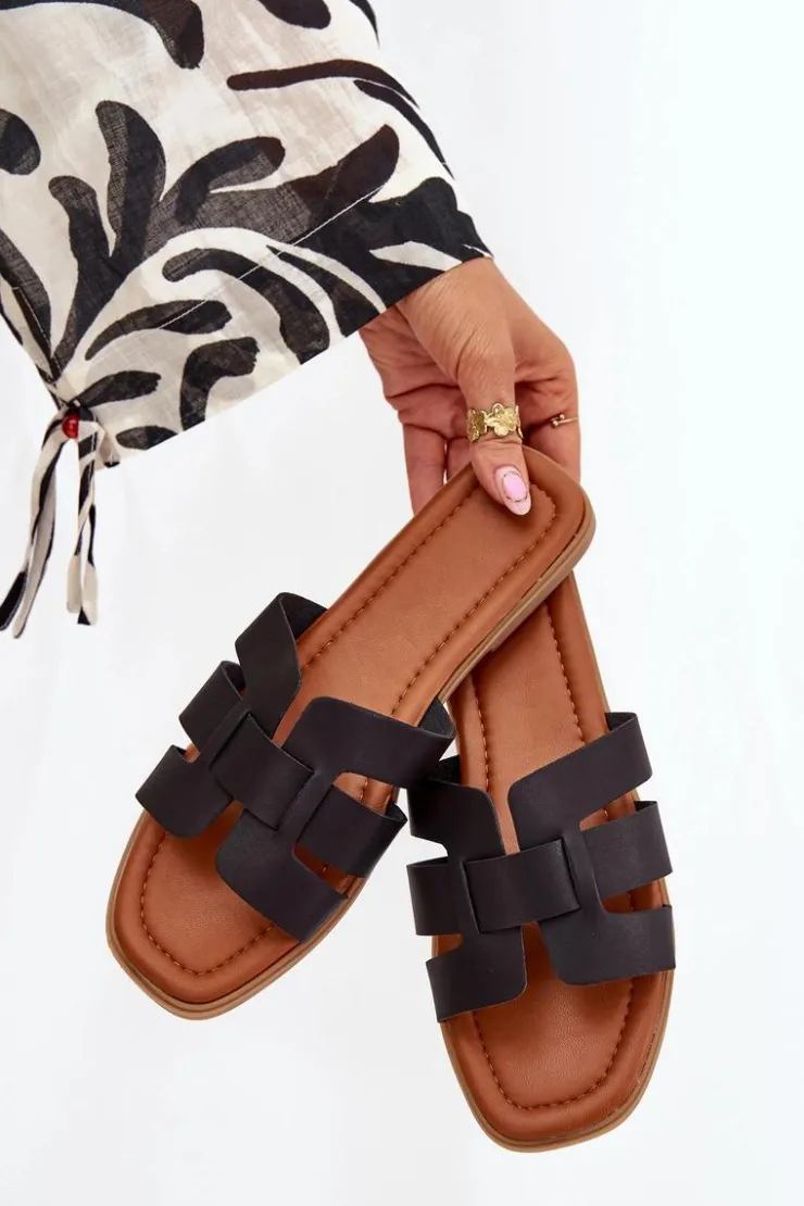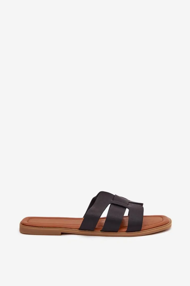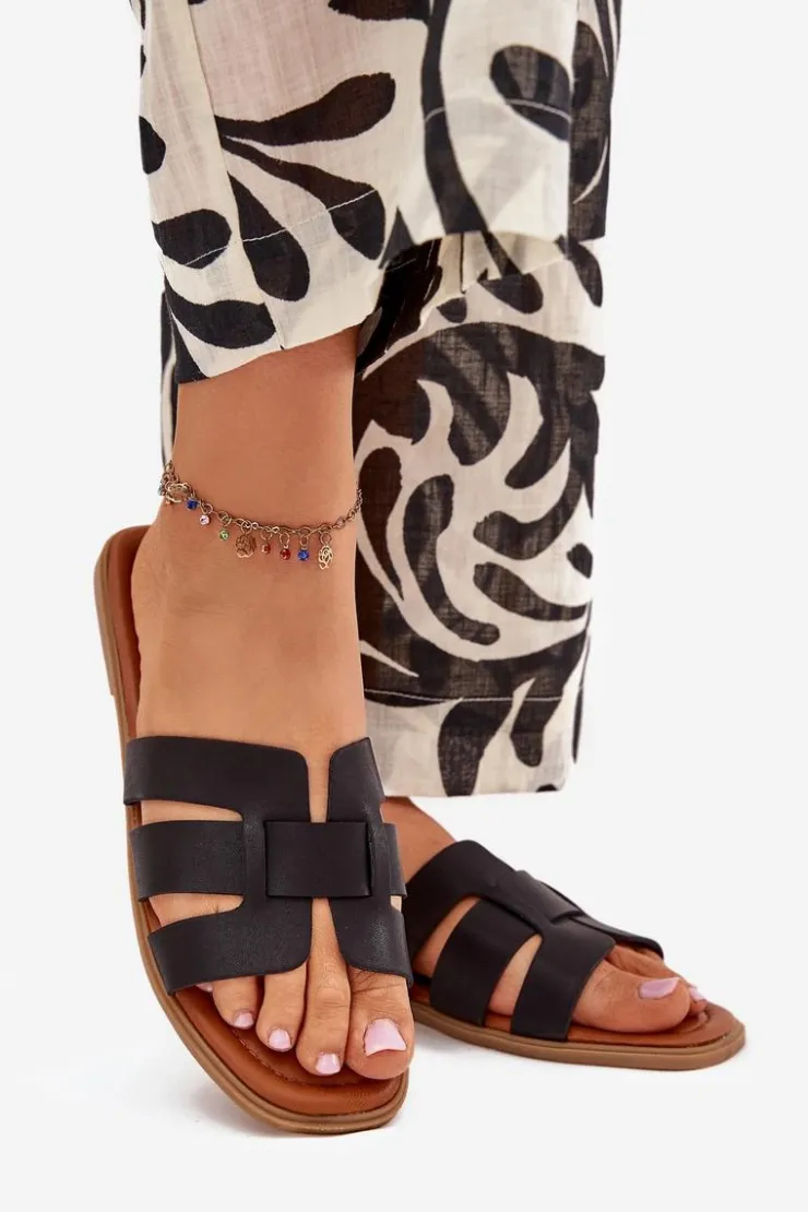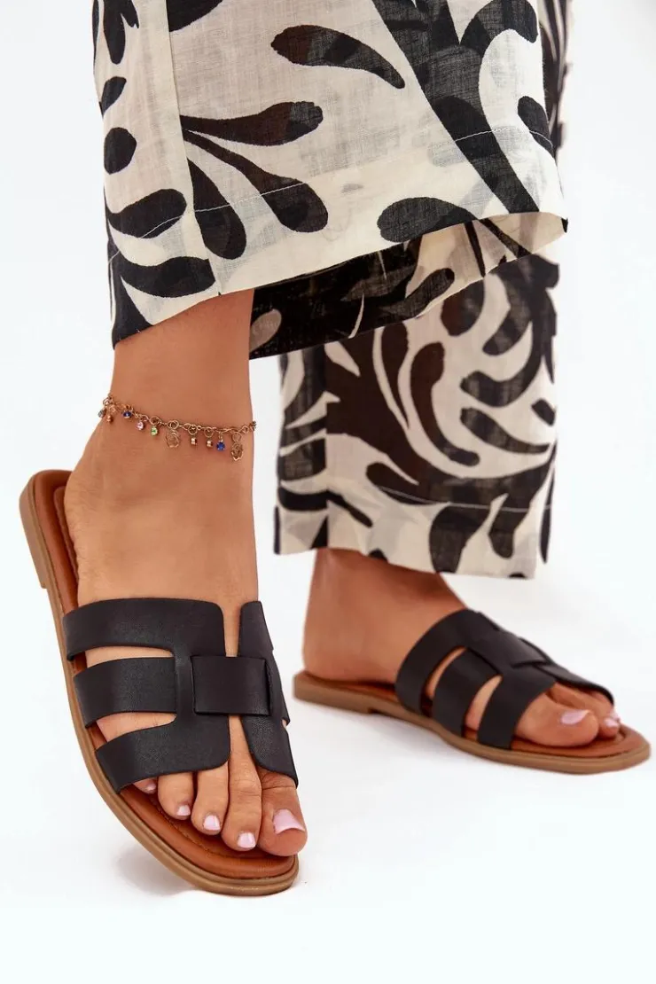 Discount Boto Klapki Damskie Na Płaskim Obcasie Czarne Mirona Czarny