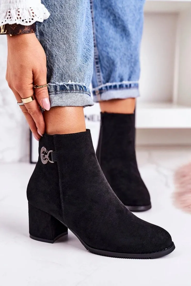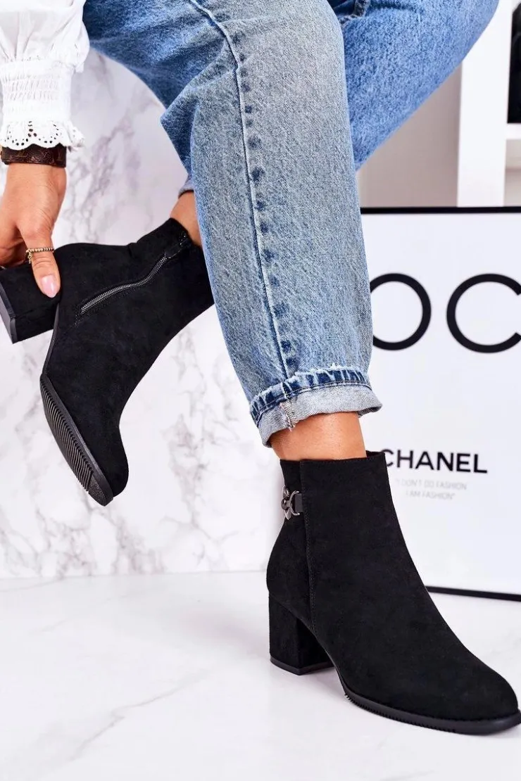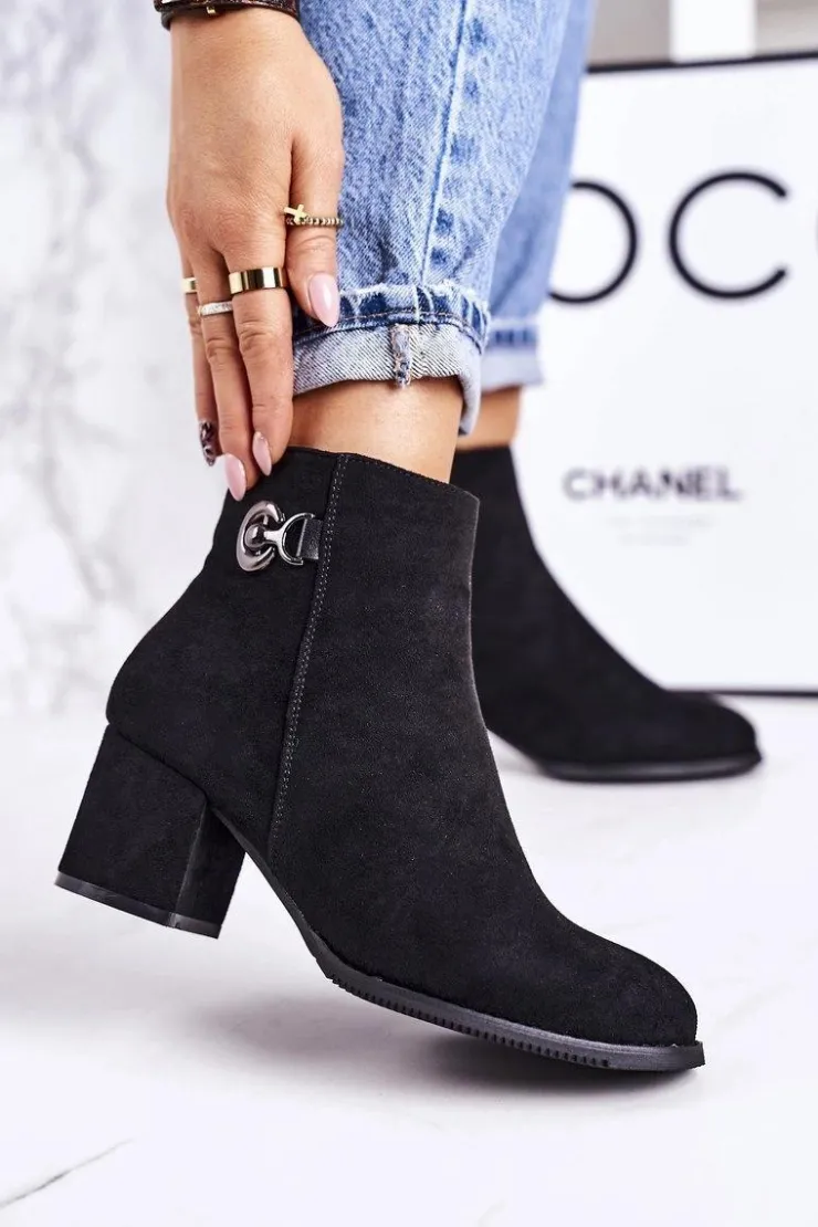 Discount Boto Klasyczne Damskie Ocieplane Botki Na Słupku Czarne Success