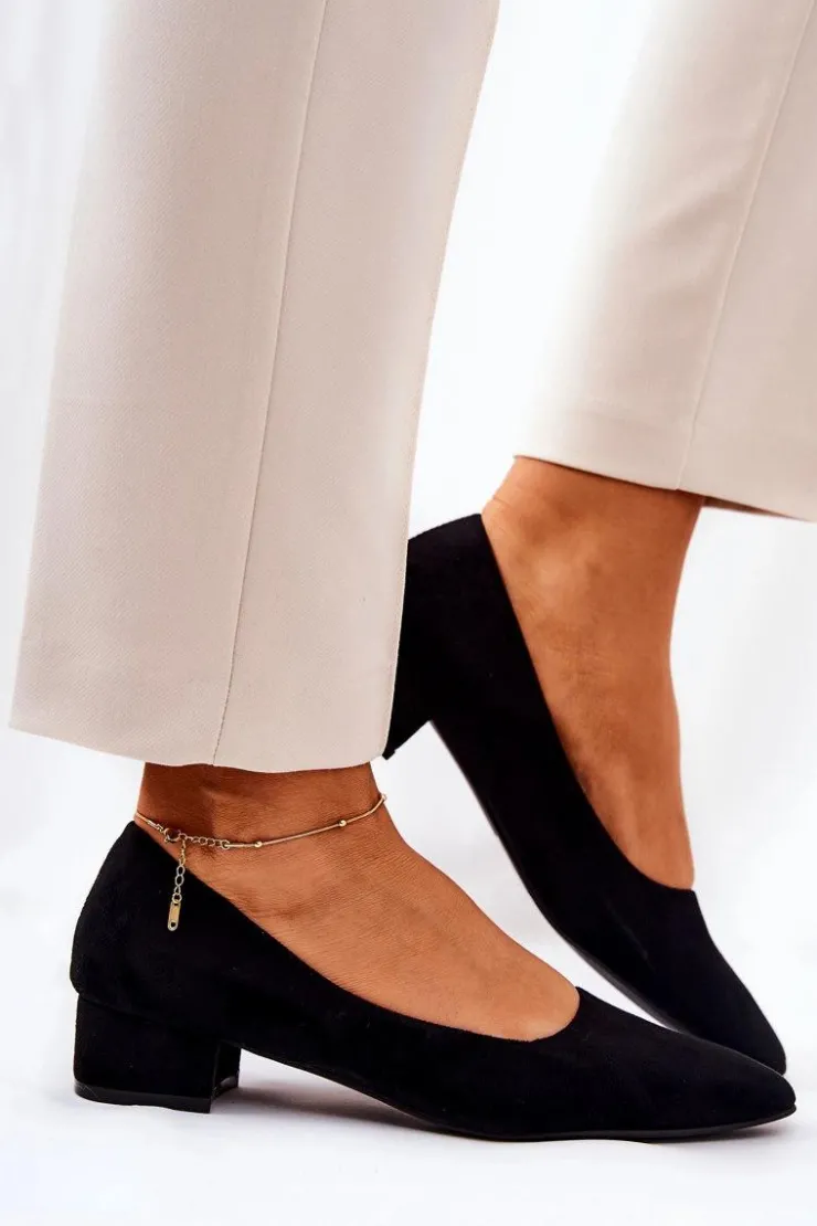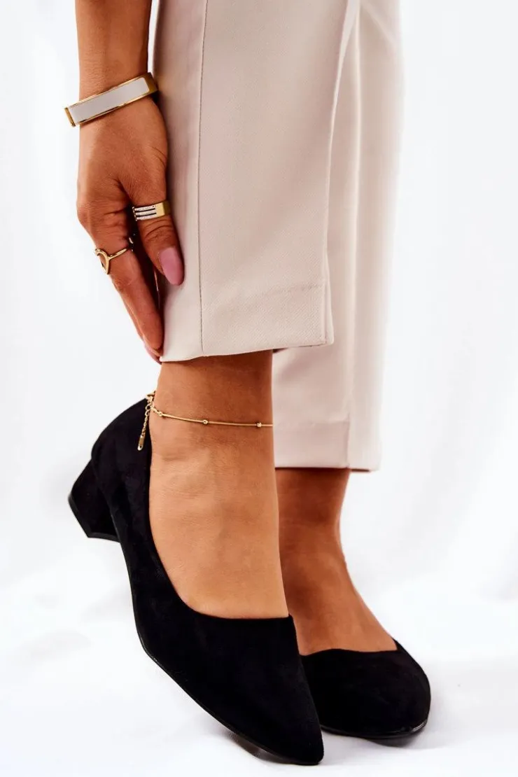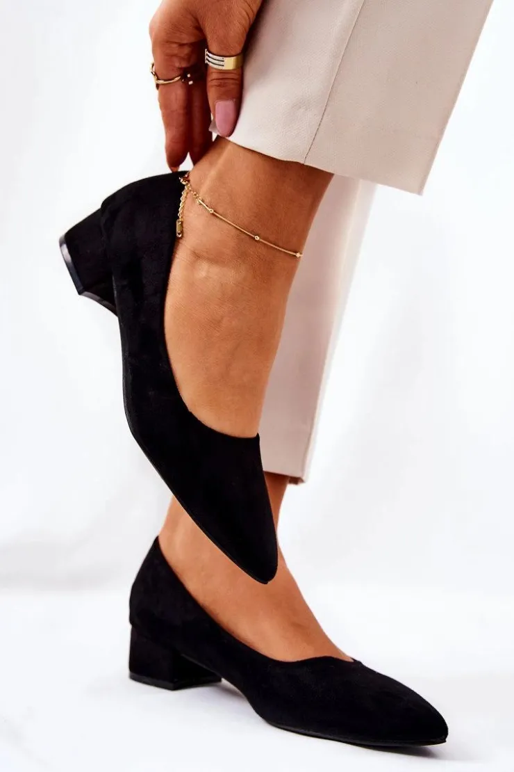 Czółenka na niskim obcasie wykonane z eko zamszu. Modny fason dostępny w wielu pięknych kolorach! Przy wyborze rozmiaru prosimy kierować się tabelą rozmiarów