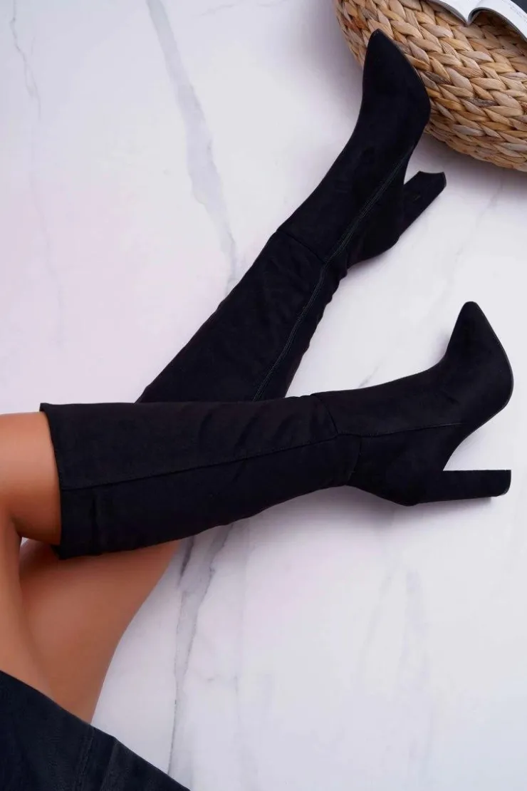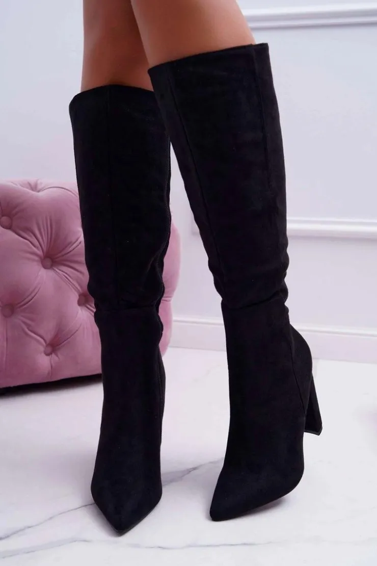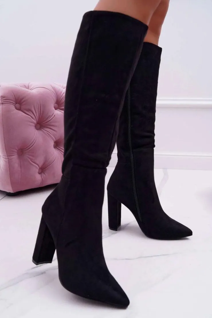 Discount Boto Kozaki Damskie Na Słupku Do Kolan Czarne Warden