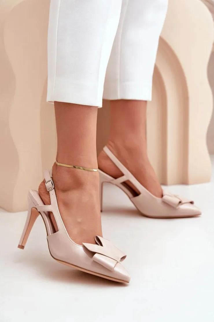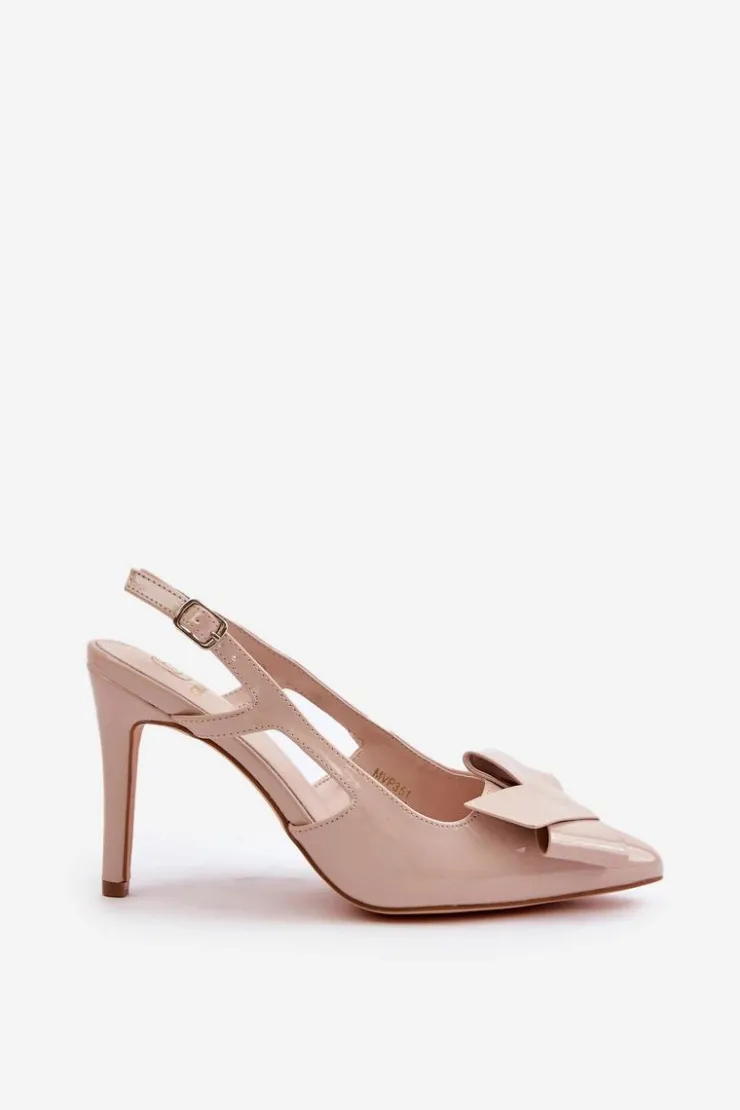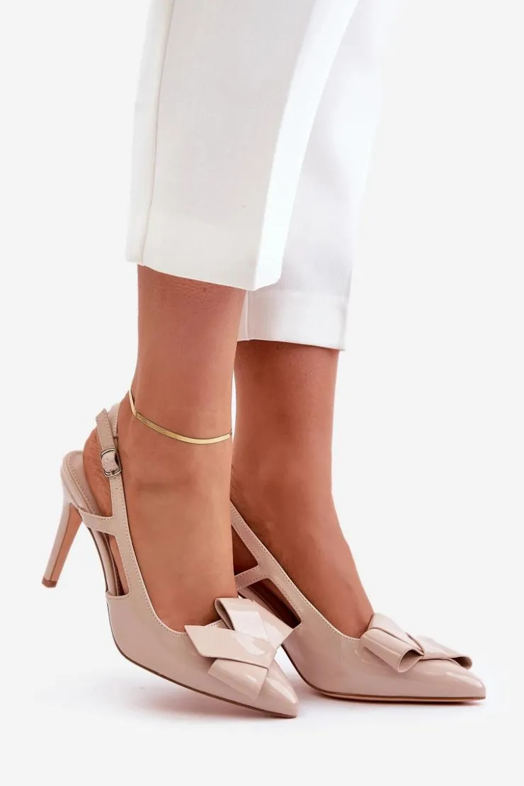 Eleganckie szpilki damskie wykonane z lakierowanej eko skóry to stylowa propozycja na wyjątkowe okazje. Model charakteryzuje się szpiczastymi noskami, które optycznie wysmuklają nogi, oraz regulowanym paskiem ze sprzączką, zapewniającym doskonałe dopasowanie. Przód buta zdobi efektowna ozdoba, dodając całości wyrazistego charakteru. Idealne do eleganckich sukienek lub wieczorowych stylizacji! Przy wyborze rozmiaru prosimy sugerować się tabelą rozmiarów.