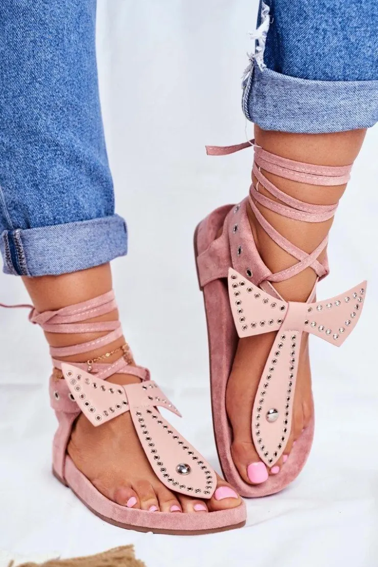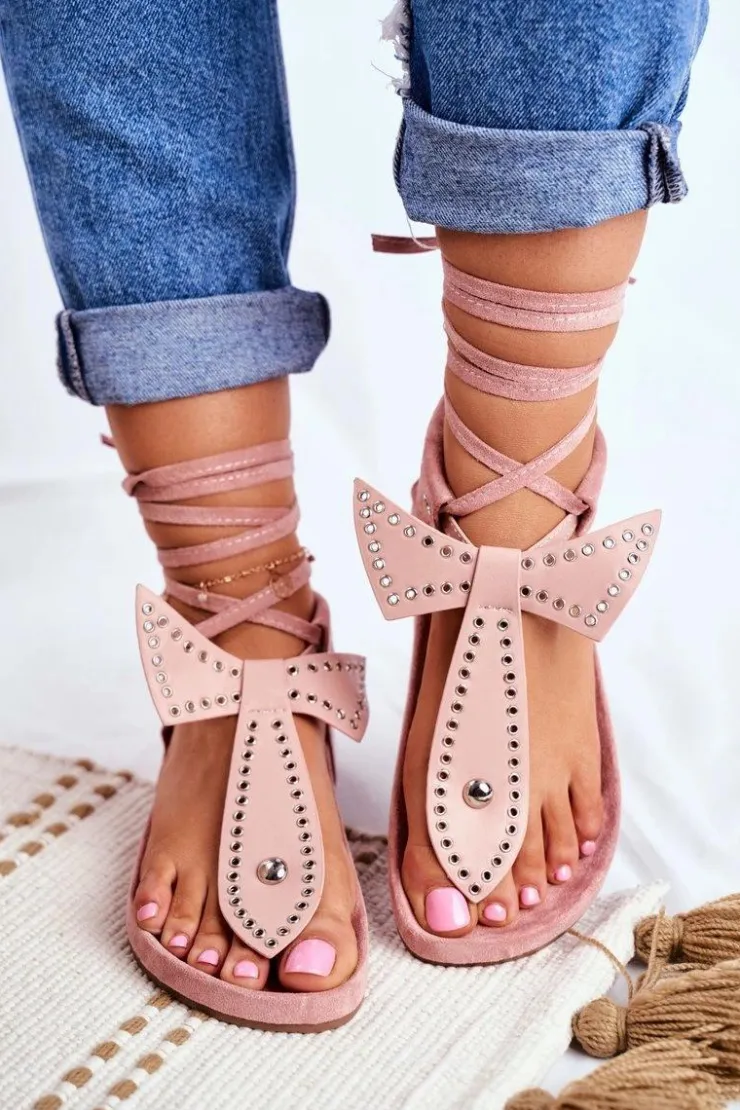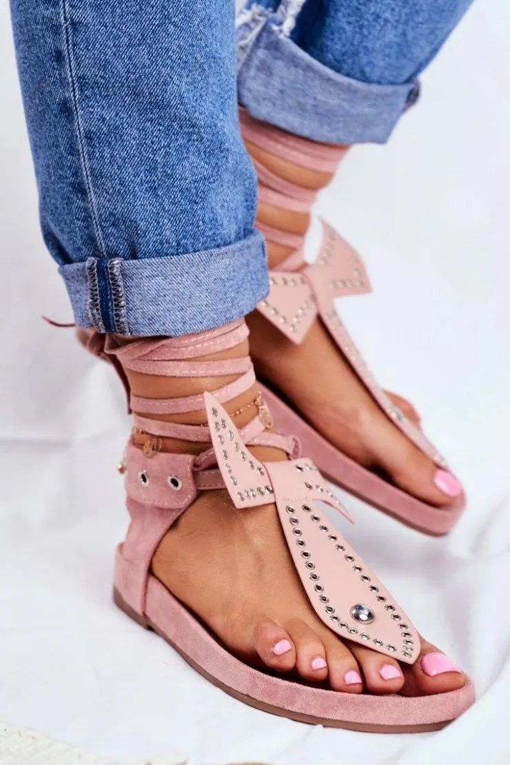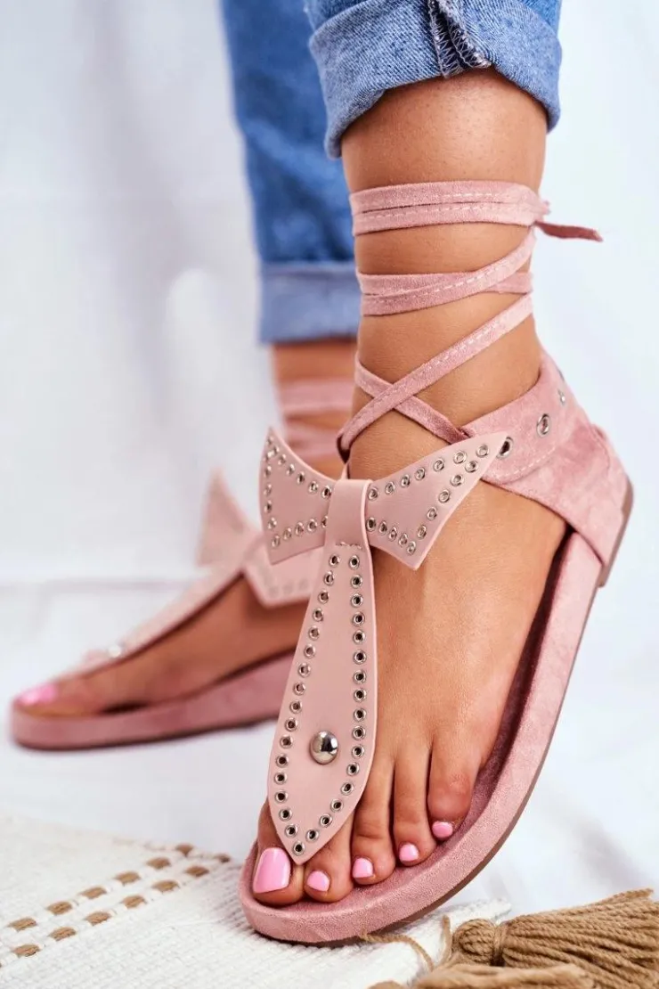 Discount Boto Lu Boo Damskie Wiązane Sandały Japonki Pudrowy Róż Mara
