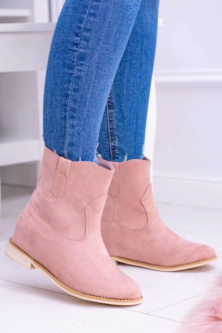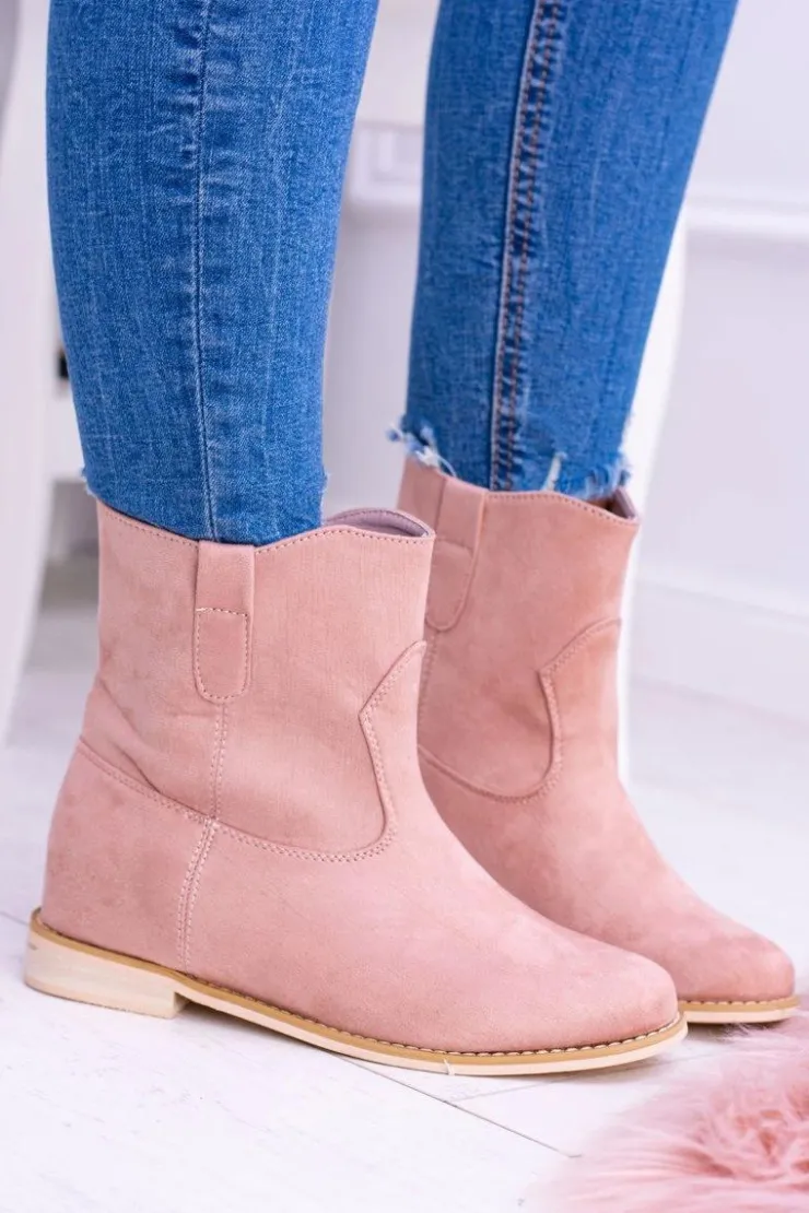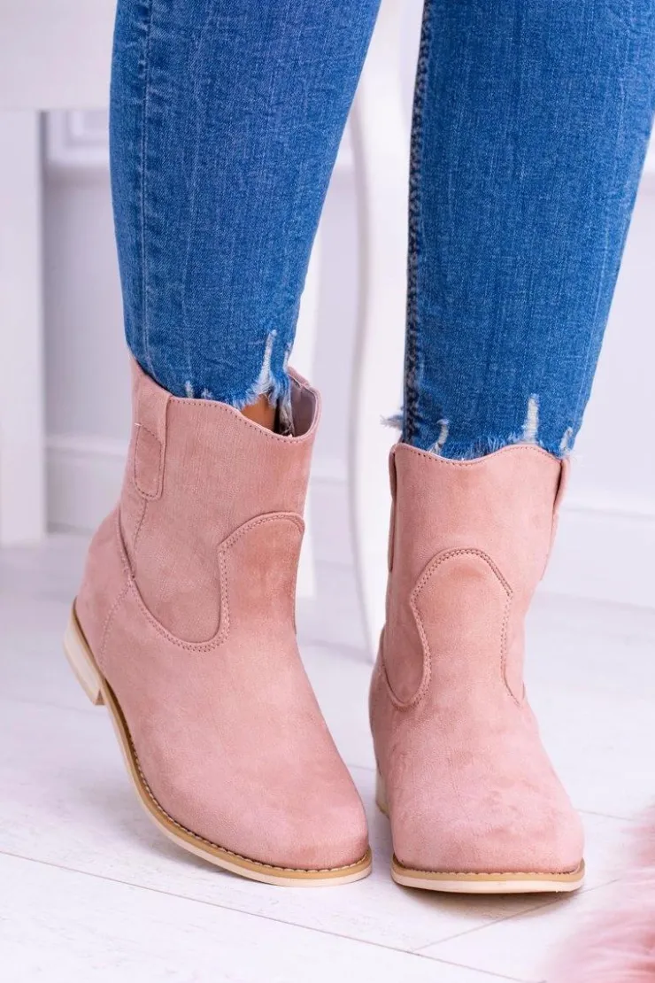Botki damskie w stylu kowbojskim to połączenie klasyki i nowoczesności. Wykonane z wysokiej jakości zamszu, oferują nie tylko trwałość, ale również stylowy wygląd. Jasnoróżowy kolor dodaje im subtelnego uroku, a niski obcas zapewnia komfort noszenia przez cały dzień. Idealne do codziennych stylizacji, świetnie komponują się zarówno z jeansami, jak i sukienkami, dodając każdej z nich unikalnego charakteru.Przy wyborze rozmiaru prosimy sugerować się tabelą rozmiarów.