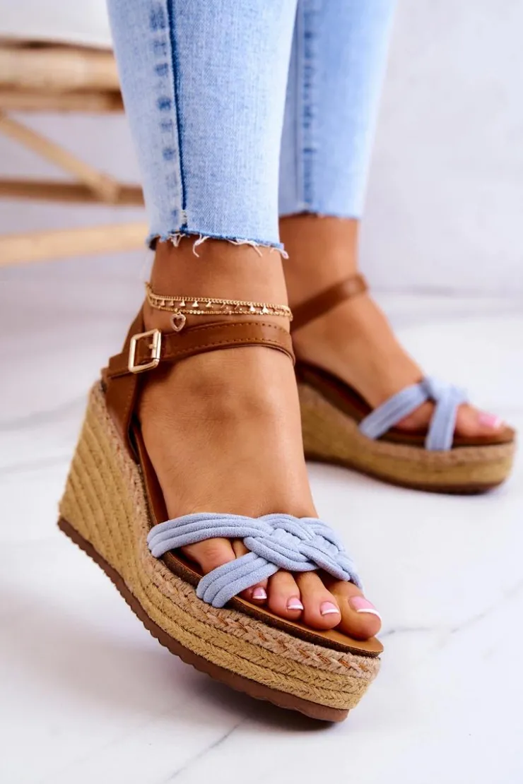Discount Boto Modne Sandały Na Koturnie Niebieskie Roseville