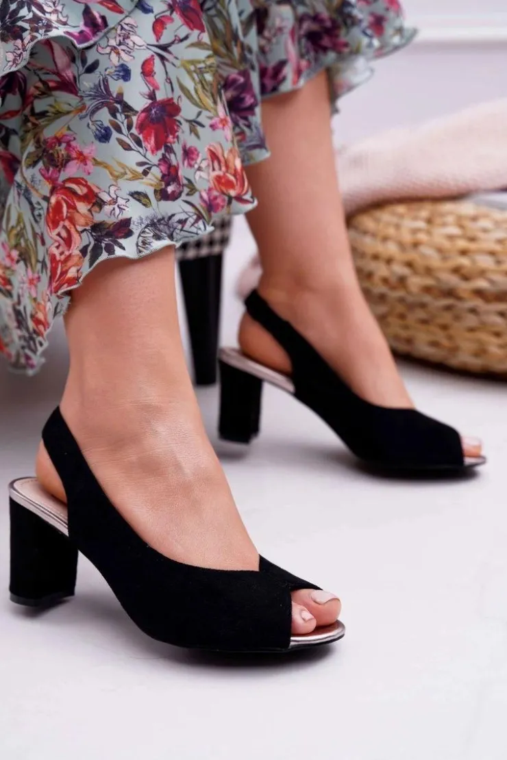 Discount Boto Sandały Damskie Na Słupku Zamszowe Czarne Pollem