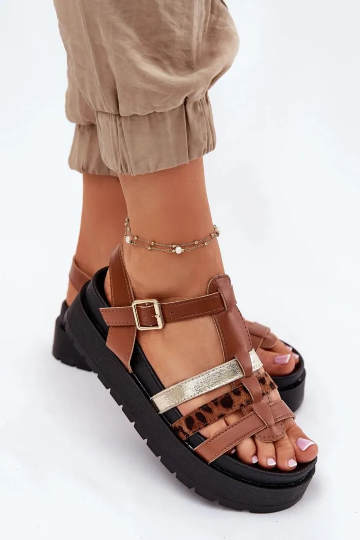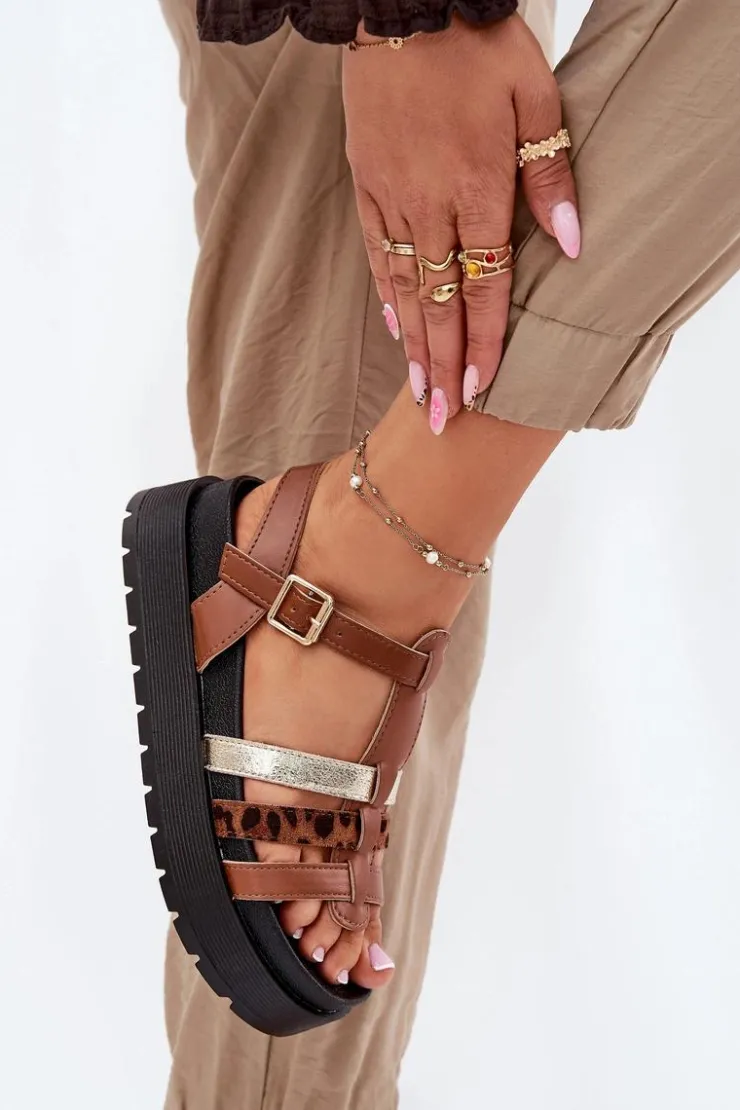 Sandały damskie wykonane z eko skóry, które nie tylko świetnie się prezentują, ale także delikatnie wydłużą sylwetkę dzięki platformie. Model ten zapinany jest na klamrę z regulowanym paskiem, co pozwala na idealne dopasowanie do stopy. Z przodu znajdują się trzy smukłe paseczki. Model ten to doskonały wybór na ciepłe, letnie dni! Przy wyborze rozmiaru prosimy kierować się tabelą rozmiarów.