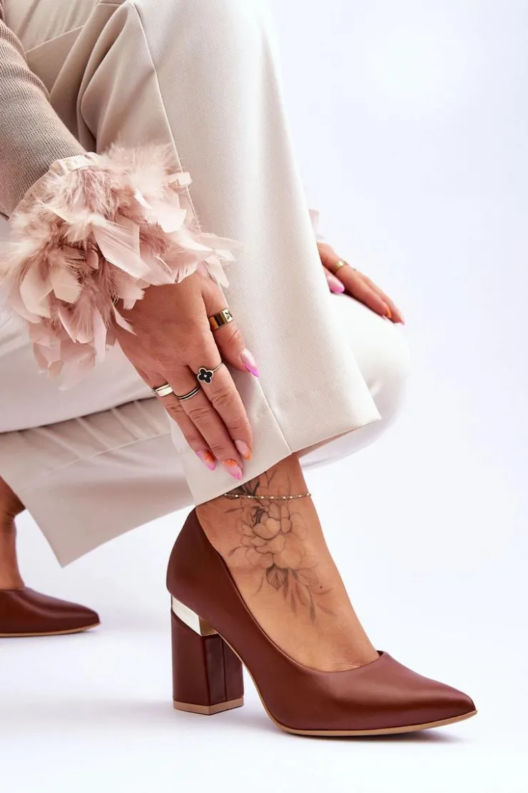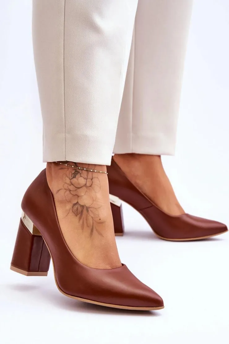 Discount Boto Skórzane Czółenka Lewski 3117 Brązowe Brązowy