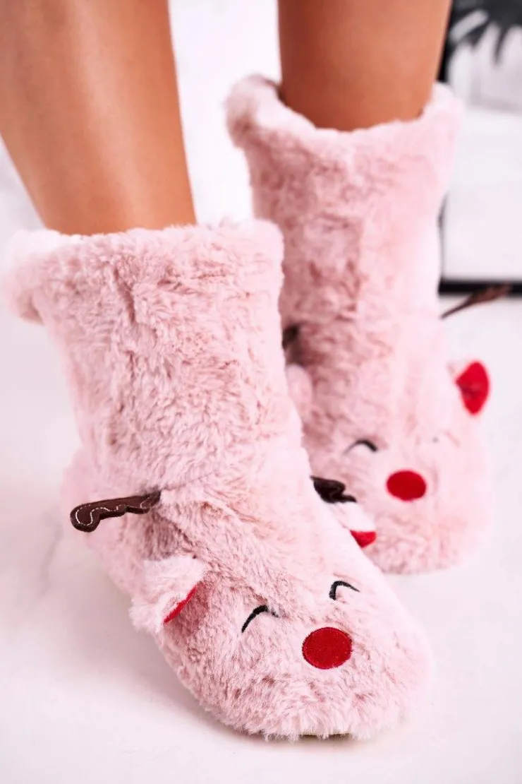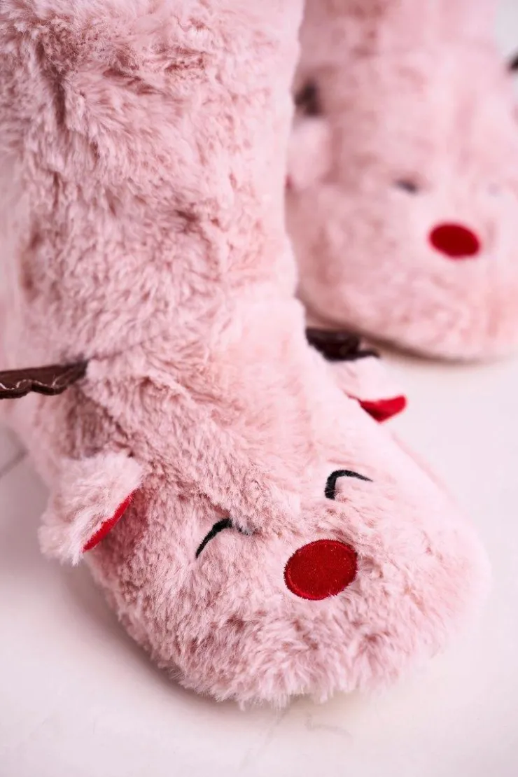 Discount Boto Świąteczne Papcie Z Reniferem Ocieplone Kożuszkiem Różowe Rudolph