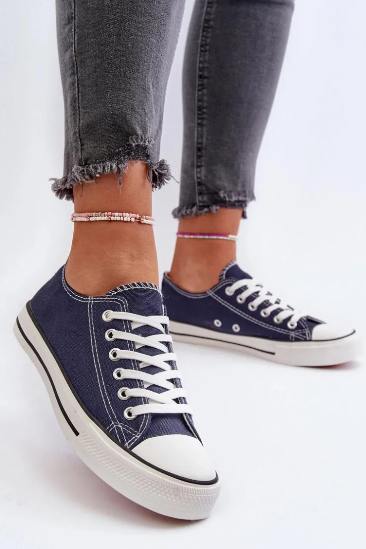 Discount Boto Trampki Damskie Klasyczne Niskie Granatowe Caelira