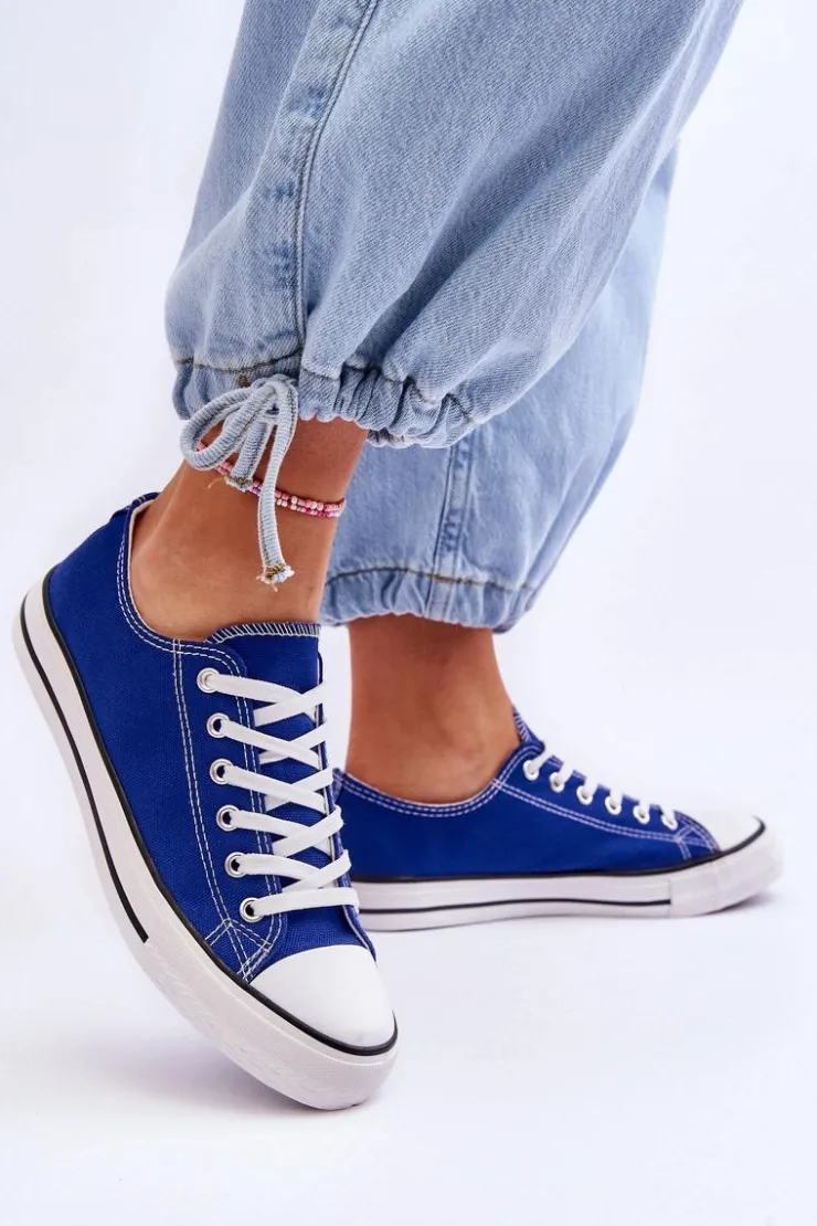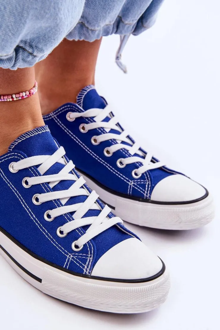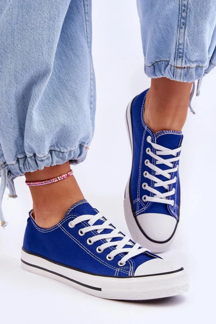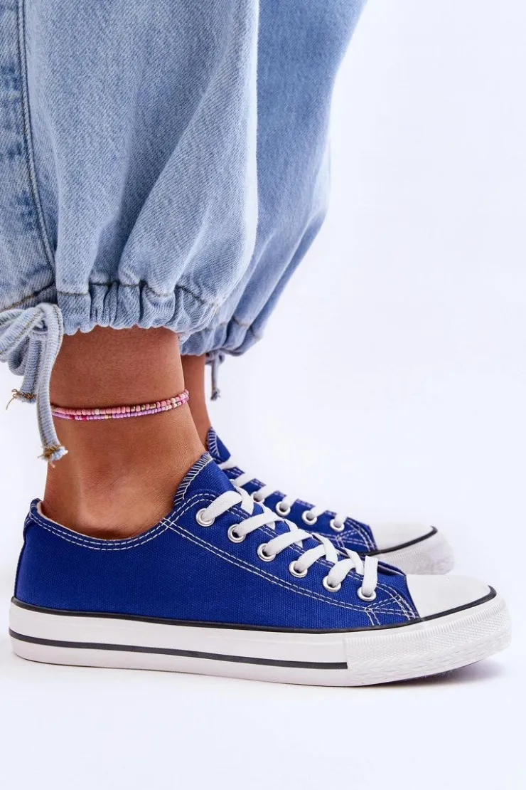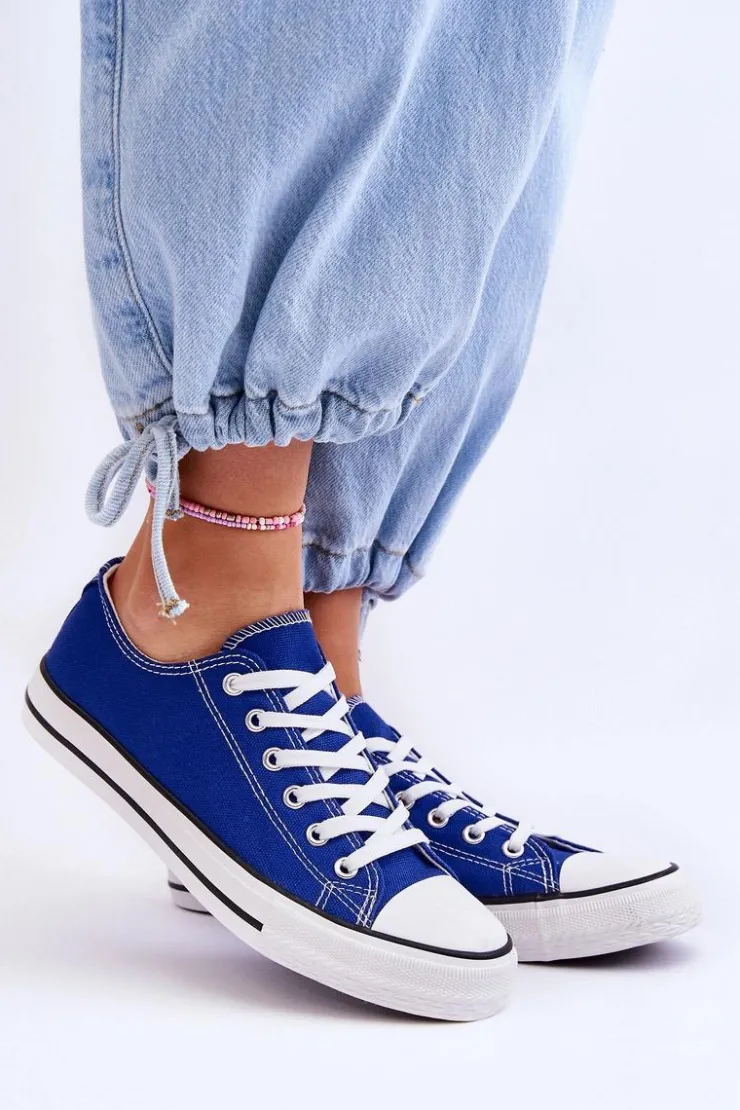 Klasyczne, sznurowane trampki damskie zostały wykonane z materiału tekstylnego. Posiadają gumową podeszwę, która jest dodatkowo antypoślizgowa. Ponadczasowy model, który powinnaś mieć w swojej szafie! Z pewnością założysz je do wielu stylizacji! Nosek został wzmocniony gumowym tworzywem. Wygodna, materiałowa wkładka zapewni komfort podczas użytkowania. Przy wyborze rozmiaru prosimy sugerować się tabelą rozmiarów.