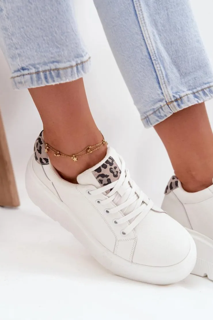 Damskie sneakersy Vinceza wykonane z naturalnej skóry łączą wygodę ze sportowym stylem. Osadzone na platformie, subtelnie podkreślają sylwetkę, a sznurowania pozwalają na idealne dopasowanie do stopy. Zaokrąglone noski dodają im klasycznego, uniwersalnego charakteru. Model ten doskonale sprawdzi się w codziennych, casualowych stylizacjach. Przy wyborze rozmiaru prosimy kierować się tabelą rozmiarów.