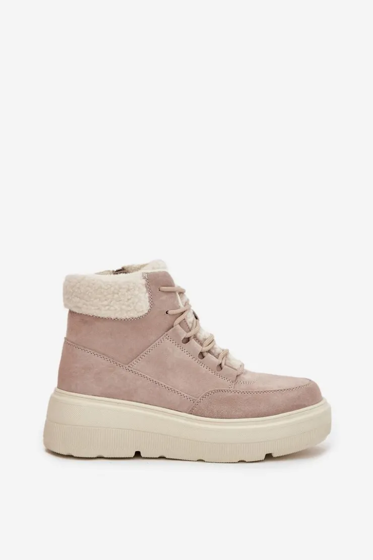Discount Buty damskie Vinceza Zamszowe Śniegowce Damskie Z Kożuszkiem Na Platformie Vinceza 95354 Beżowe Beżowy