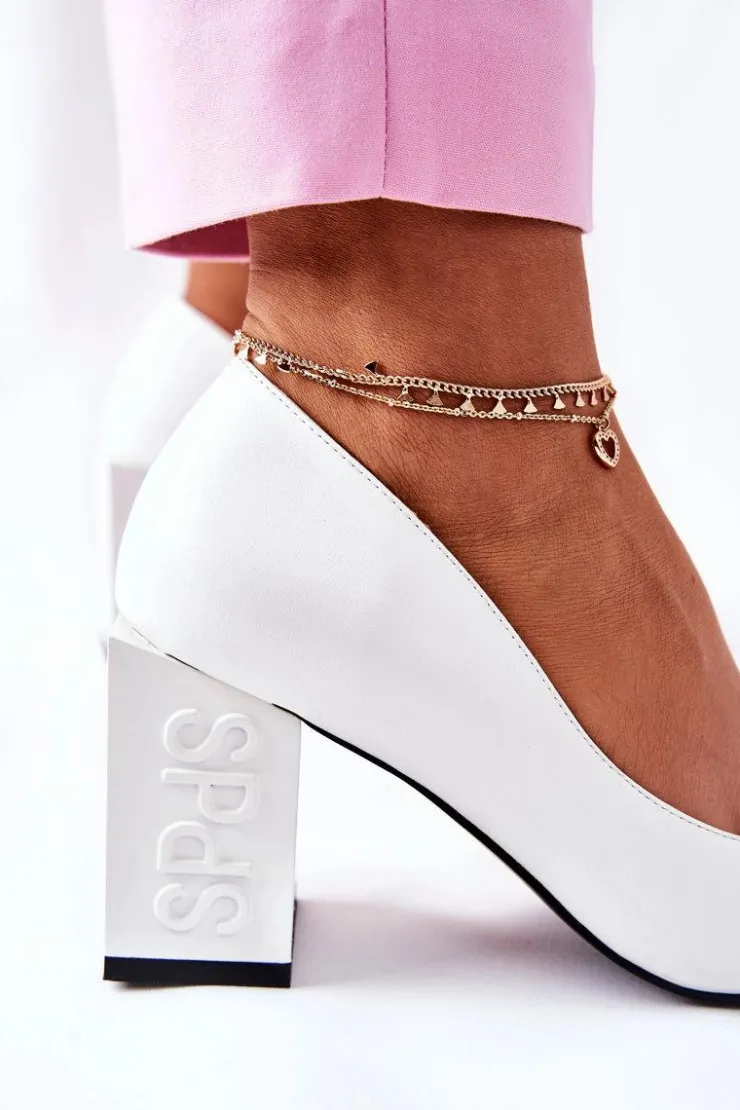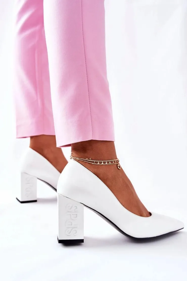Discount Damskie buty S.Barski Skórzane Czółenka Na Słupku Białe Cherith