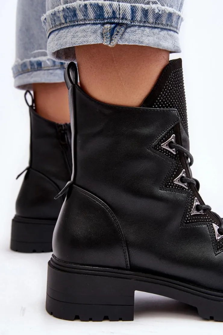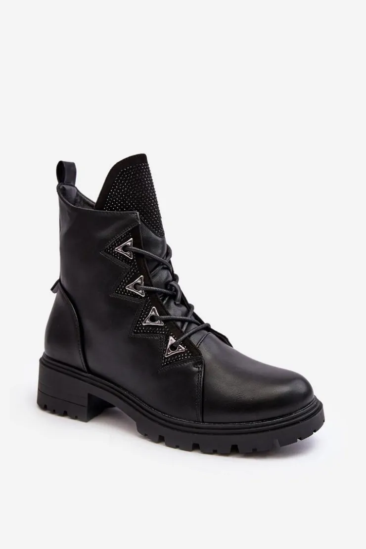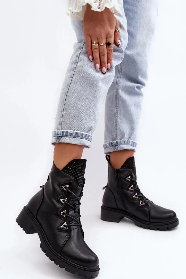 Botki damskie to idealny wybór na przejściowy sezon. Te botki zostały wykonane z lakierowanej eko skóry. Posiadają dżety przy sznurowadłach i na języku. Dodatkowo zapiętek jest usztywniany. Model ten posiada ocieplenie w postaci koca obuwniczego. Botki osadzone na płaskim obcasie i platformie ze żłobieniami. Ten model powinien być Twój! Przy wyborze rozmiaru prosimy sugerować się tabelą rozmiarów.