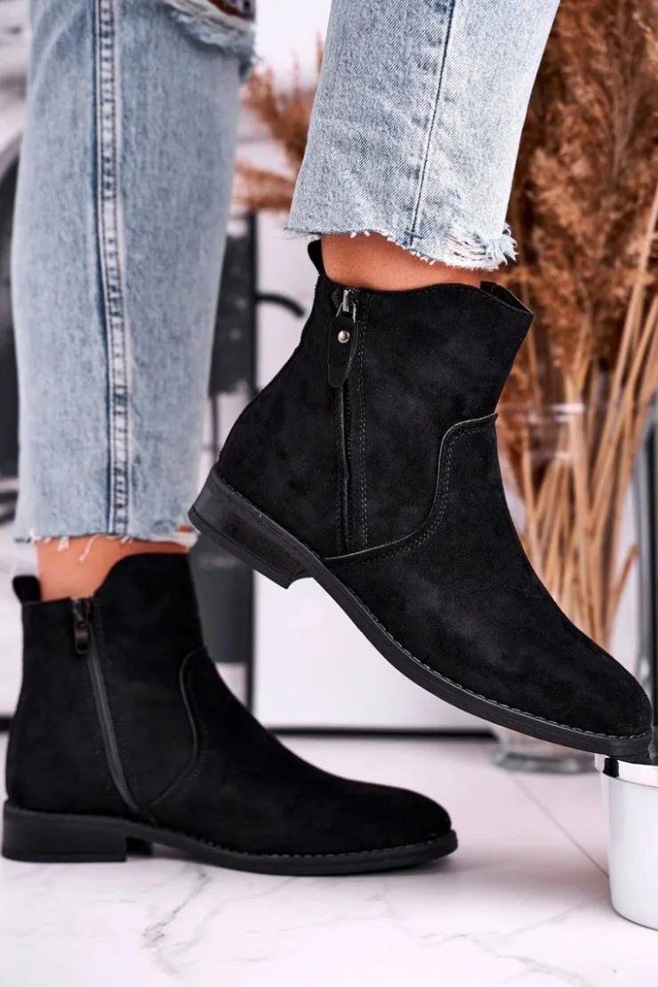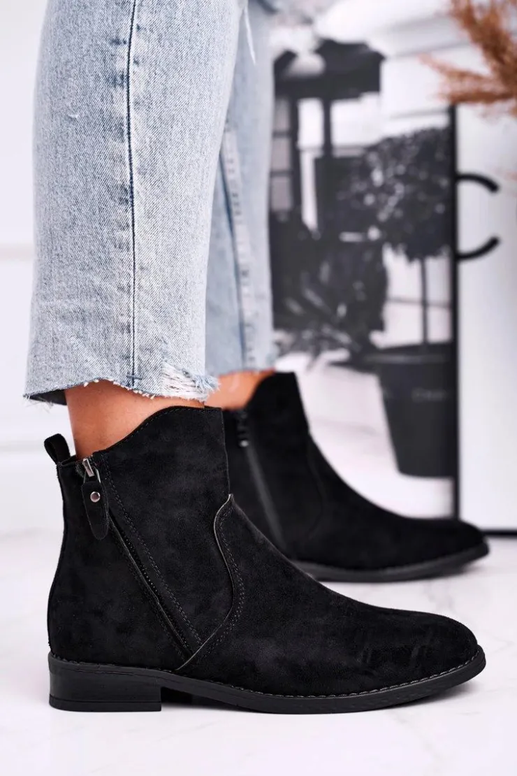 Discount Evento Botki Damskie Kowbojki Płaski Obcas Czarne Plemmi