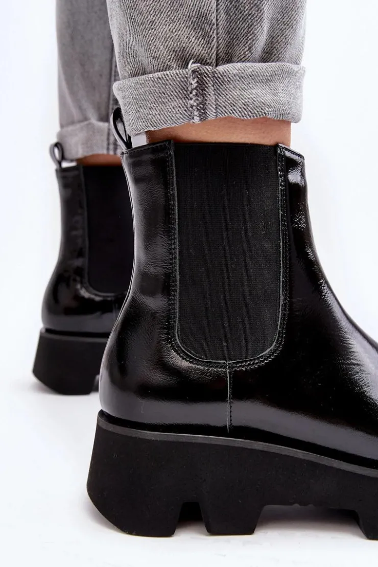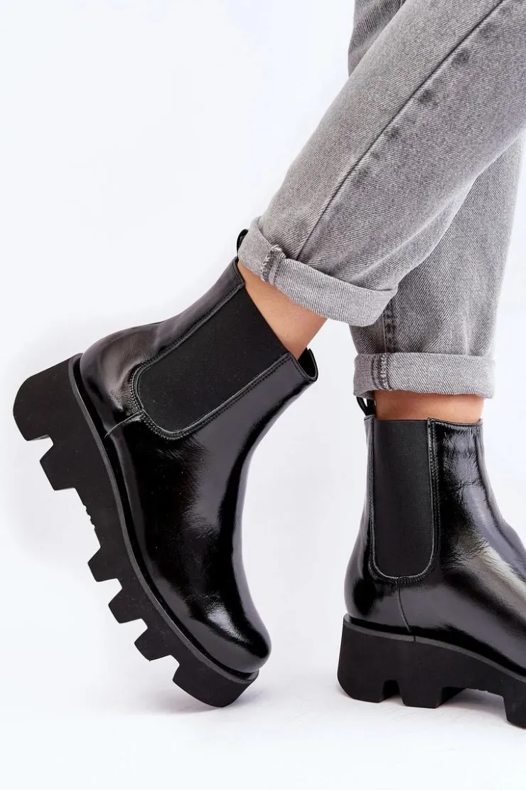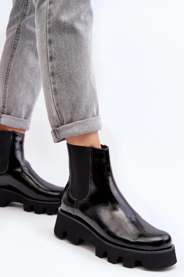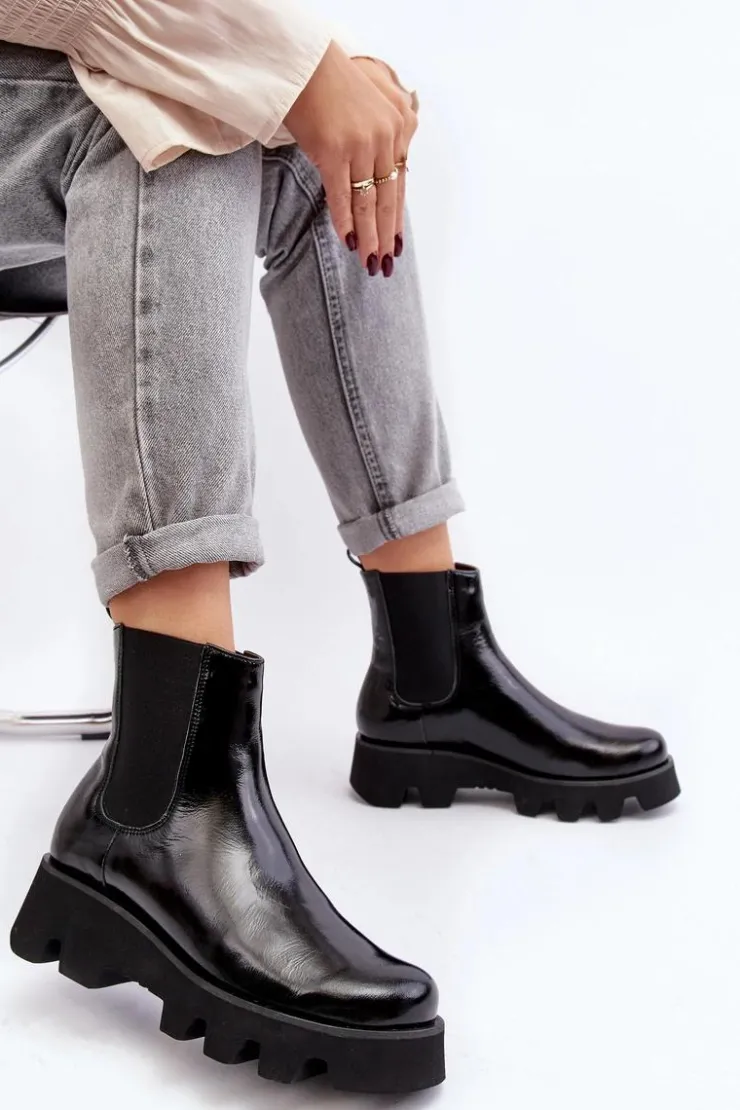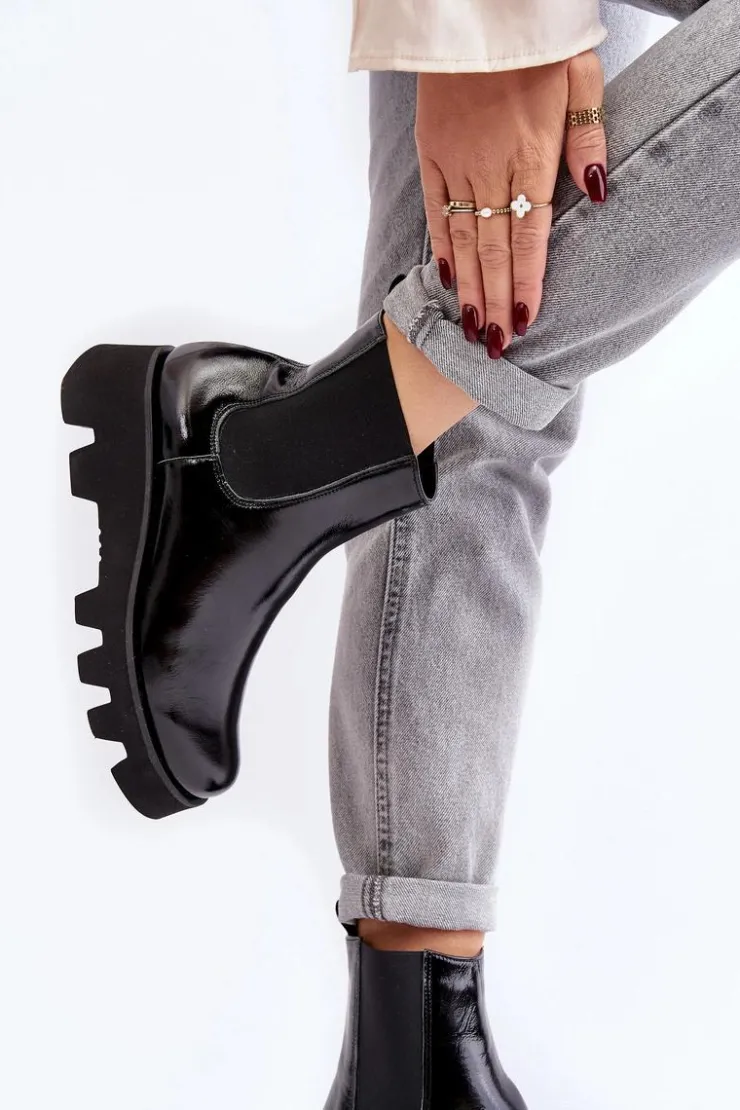 Damskie botki wykonane ze skóry naturalnej. Osadzone na płaskim obcasie i platformie ze żłobieniami. Model wysuwany. Środek ocieplony kocem obuwniczym. Noski zaokrąglone. Usztywniony zapiętek. Świetny model do wielu stylizacji! Musisz je mieć! Przy wyborze rozmiaru prosimy sugerować się tabelą rozmiarów.