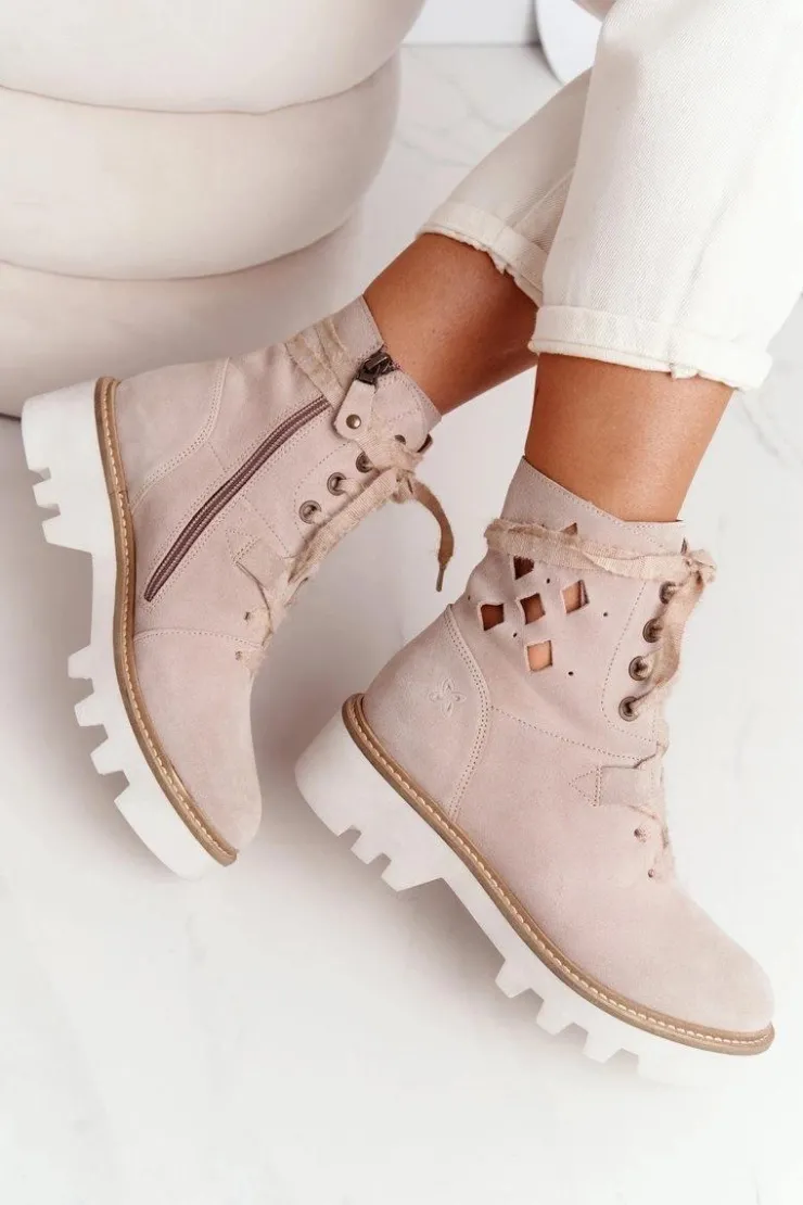 Polska marka Maciejka to wyjątkowy styl i dbałość o detale. Ażurowe botki wykonane są z miękkiego, naturalnego zamszu. Skórzana wkładka oraz antypoślizgowa podeszwa to gwarancja komfortu. Koniecznie sprawdź całą naszą kolekcję butów marki Maciejka. Przy wyborze rozmiaru prosimy sugerować się tabelą rozmiarów.