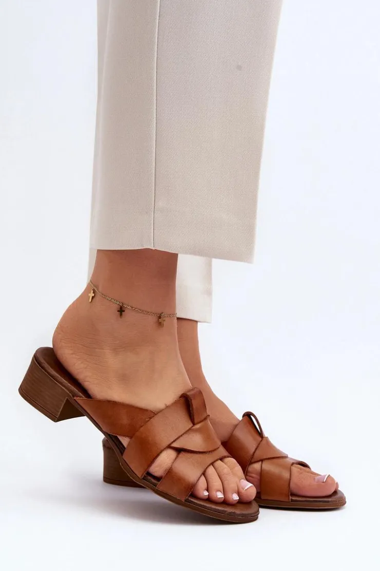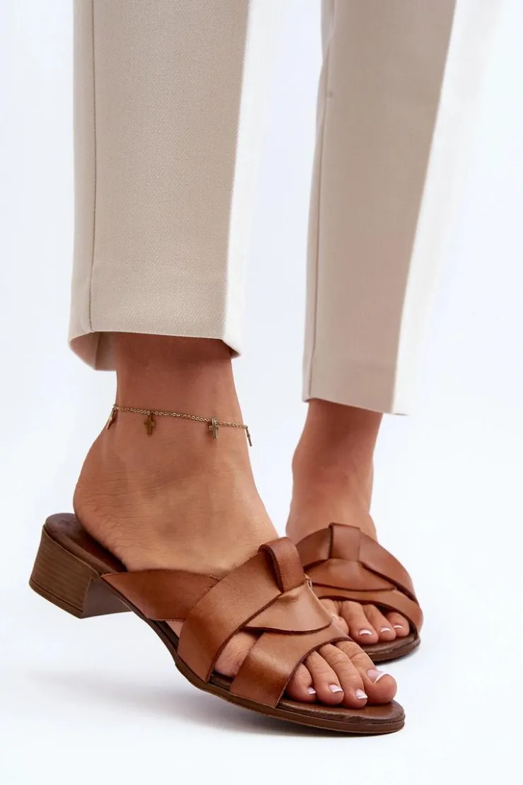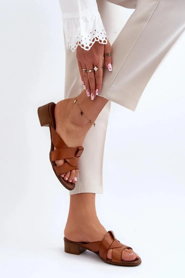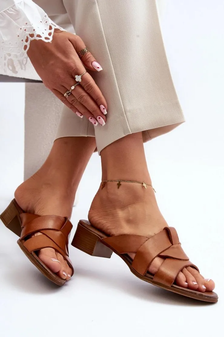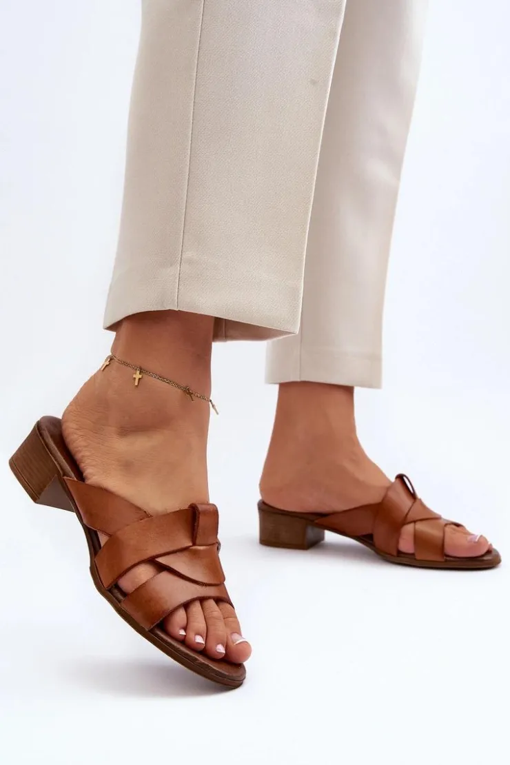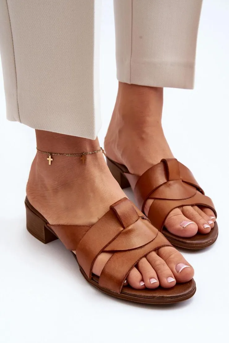 Klapki damskie wykonane ze skóry naturalnej. Osadzone na niskim obcasie. Skórzana wkładka zapewni wygodę podczas użytkowania. Świetnie sprawdzą się do wielu stylizacji. Spraw sobie radość kupując nową parę butów, które będą idealne na letnie dni! Przy wyborze rozmiaru prosimy sugerować się tabelą rozmiarów.