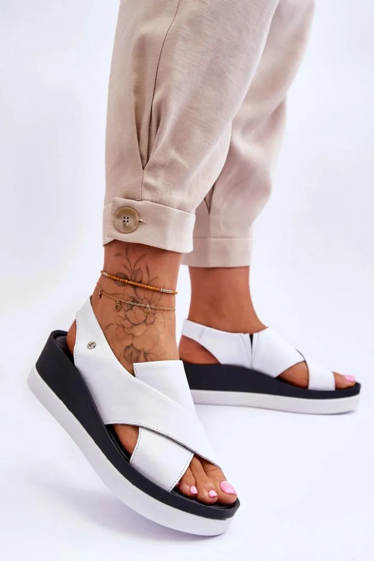 Niezwykle wygodne sandałki damskie zostały wykonane z naturalnej skóry. Model wsuwany, z dodatkowymi gumkami, które dopasują się do tęgości nogi. Model ten posiada ozdobny emblemat z boku cholewki. Sandały osadzono na platformie oraz koturnie. Ten model z pewnością przypadnie Ci do gustu! Przy wyborze rozmiaru prosimy kierować się tabelą rozmiarów.
